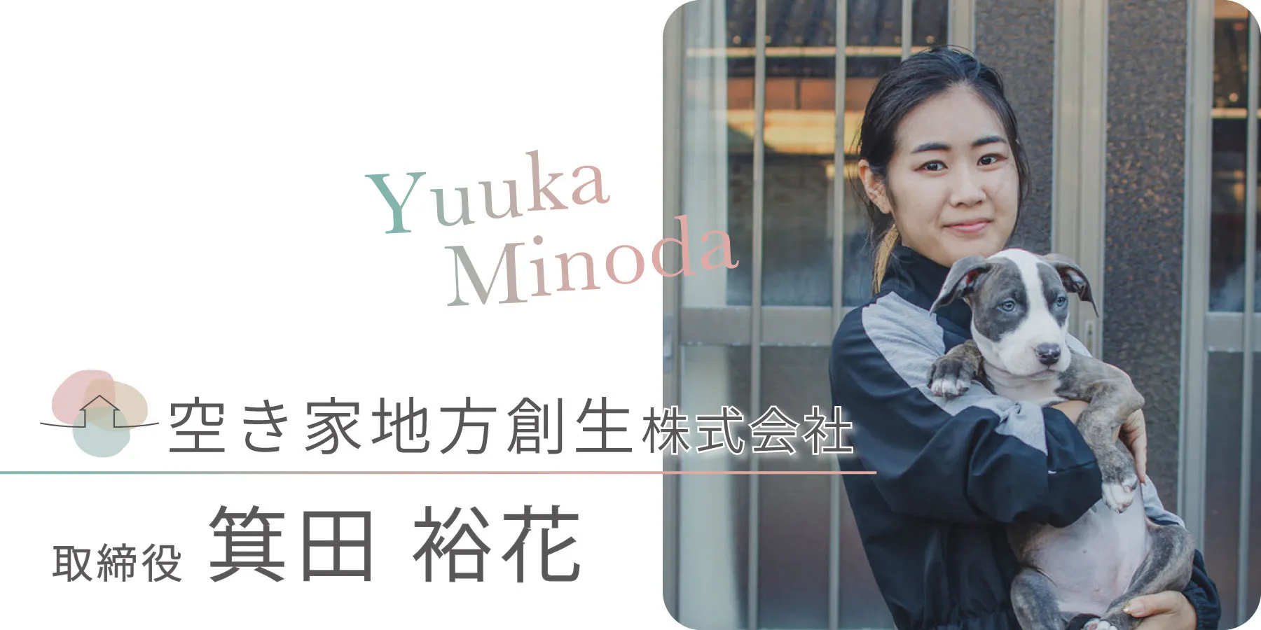大の犬好きとしてトリマーになり、トリミングサロンの経営に携わってきた経験を活かし、ワンちゃんと一緒に過ごせる心地よい場所づくりを空き家を通して行い、全国の地方の町おこし、地方創生を目指している。