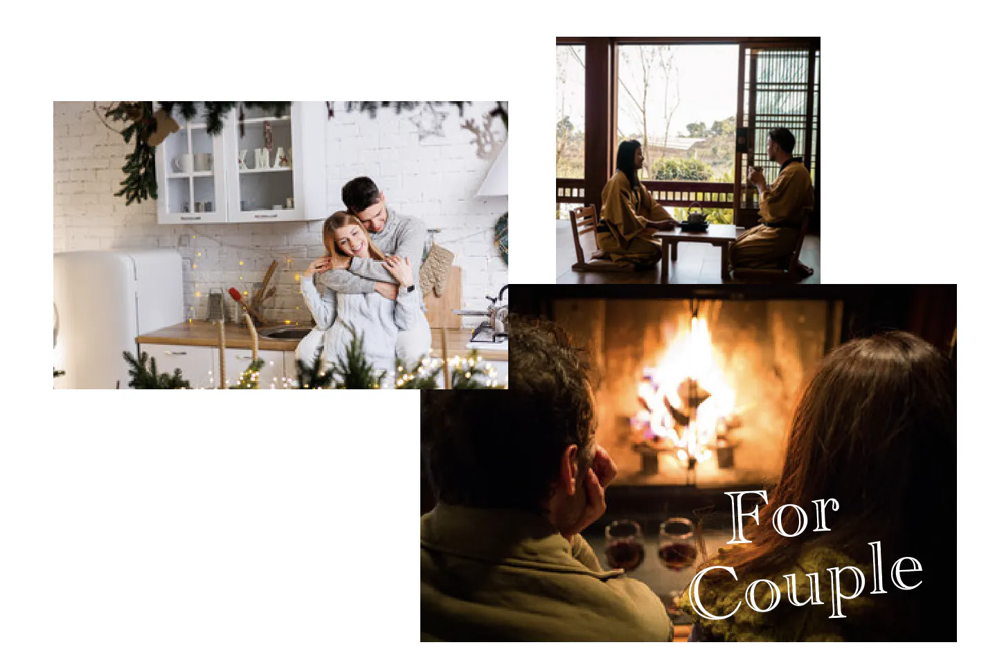 囲炉裏の炎と美味しい食事がカップルに温かいひとときを提供してくれます。その後古民家の客室に戻り、静かな時間を過ごし、特別な想い出をつくれます。