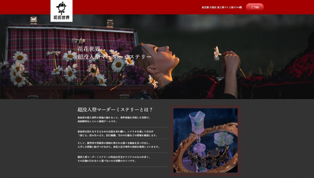 2023年3月、はじめてのクラウドファンディングに挑戦し、みなさまのご支援のもと146%という有難い数字で目標を達成し、5月、上野に超没入型マーダーミステリー店舗「花花世界・東京店」をオープンしました。
