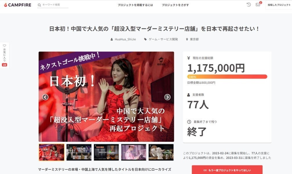 【1作目クラファンページ】日本初!中国で大人気の「超没入型マーダーミステリー店舗」を日本で再起させたい!