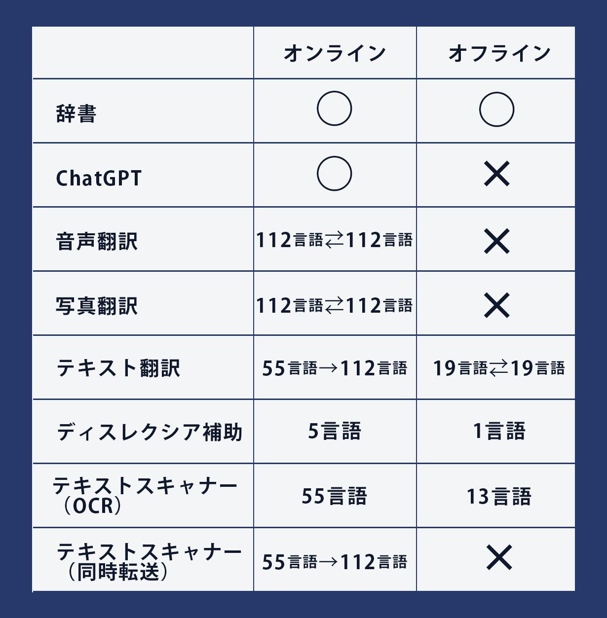 音声翻訳/写真翻訳/テキスト翻訳(読み込み言語):オンライン時