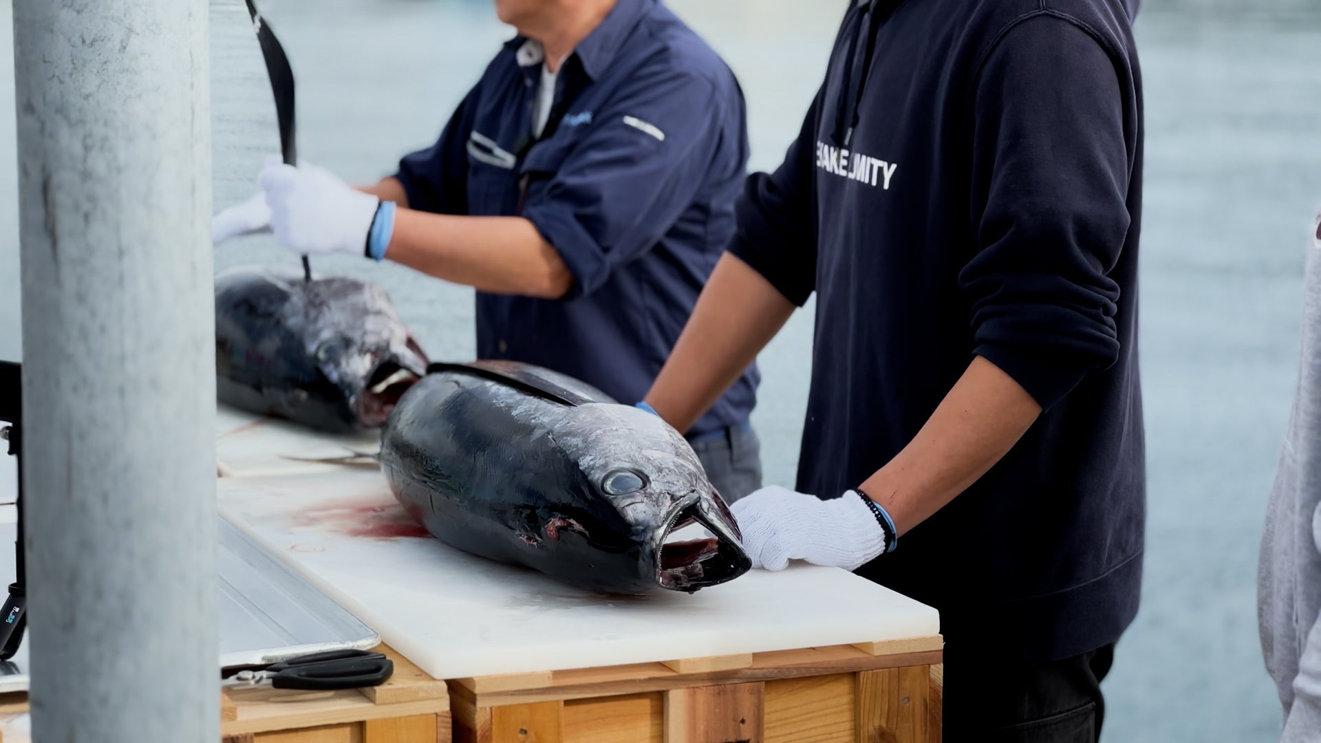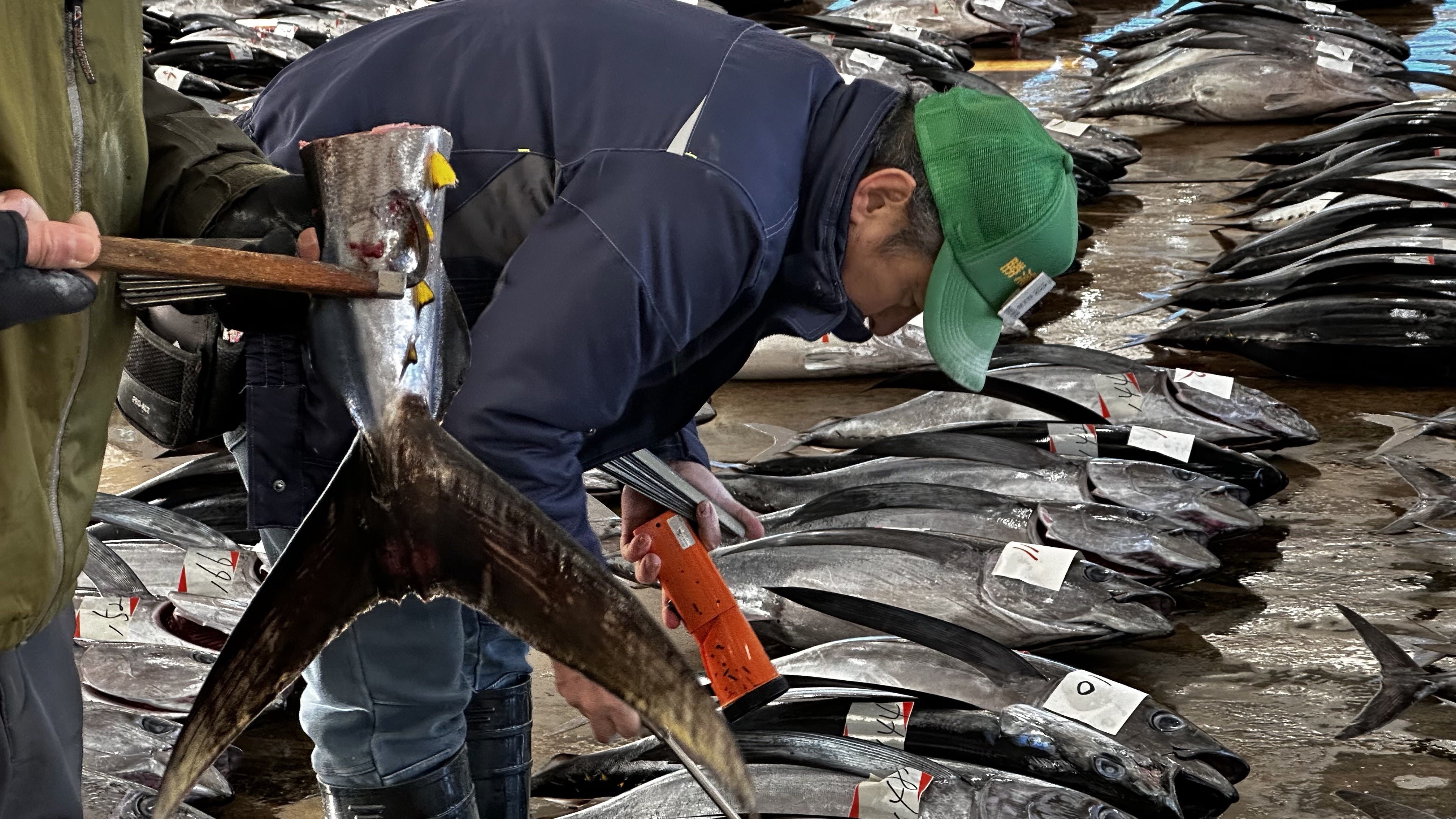 そこでまた驚いたのが、昨日の穏やかな表情はどこへやら。真剣なまなざしで一尾一尾、じっくりそしてスピーディーに、まぐろを吟味する仕事人の姿。ますます魅了され、一緒に何かできないかと考えました。