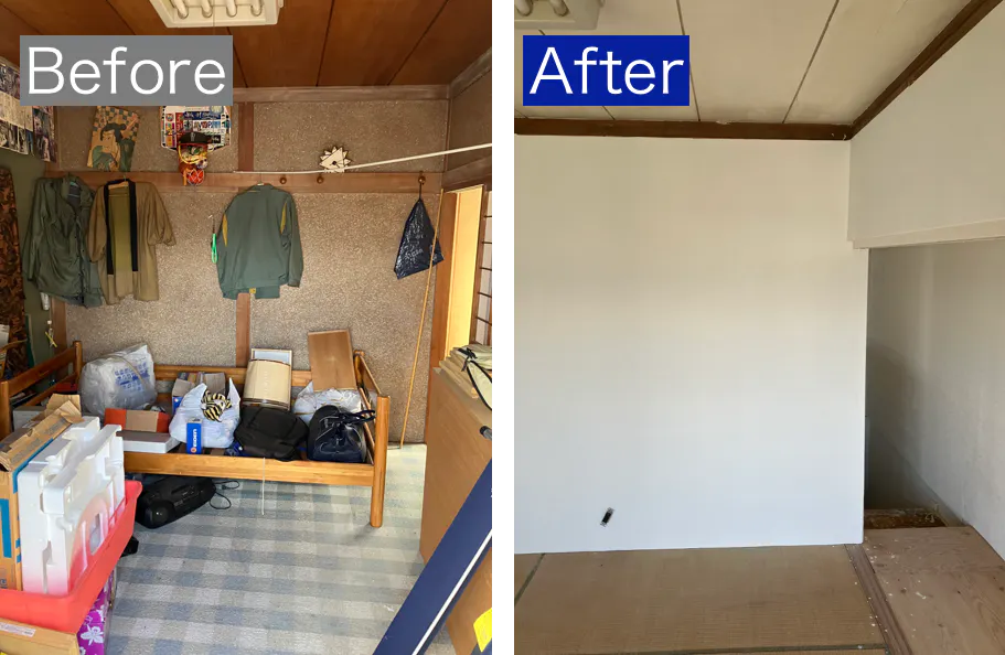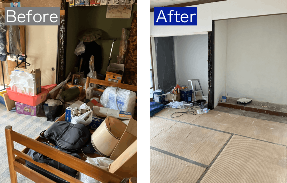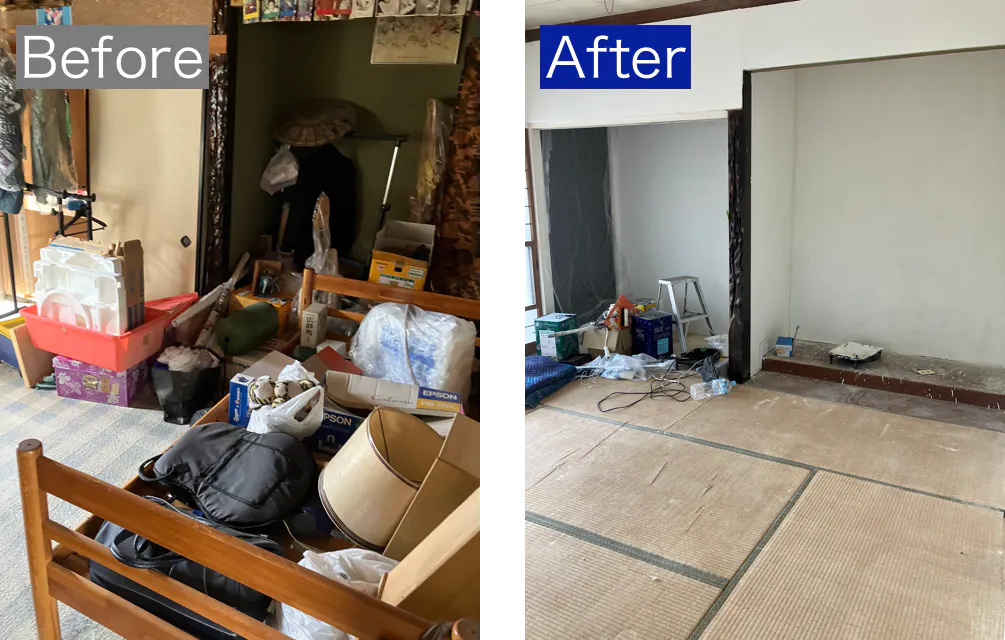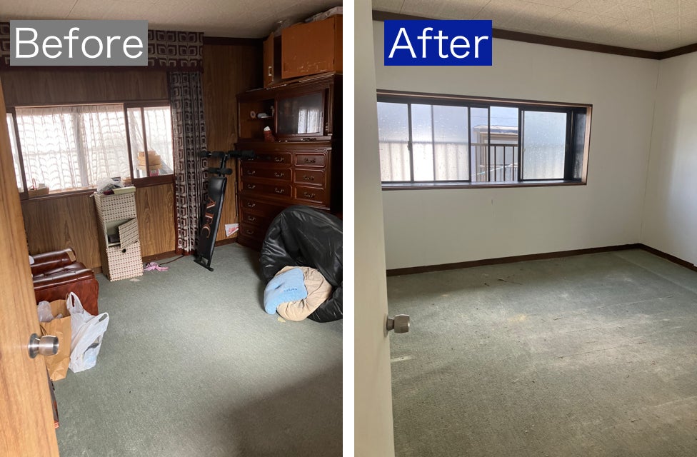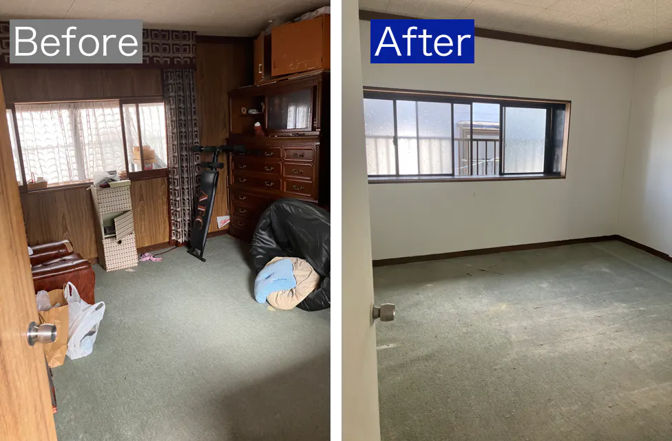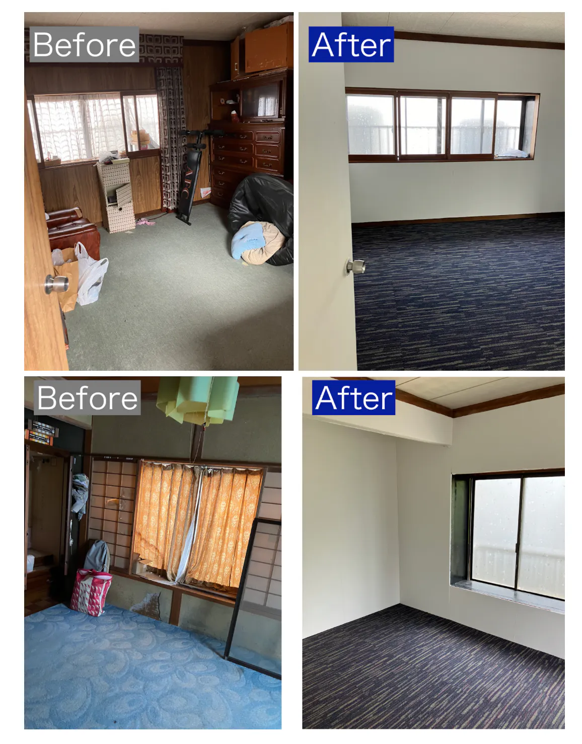 その他: 残置物を全て撤去し、水漏れのあった水道も修復しました。タンスが11個あり、全て解体して、廃棄しました。