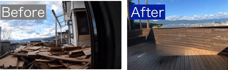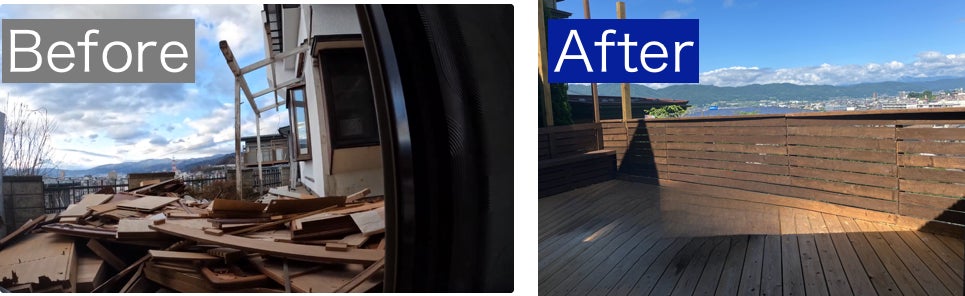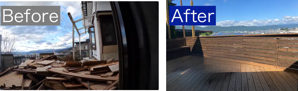 古い庭は、雑草が生い茂り、荒廃していました。そこで約16坪のウッドデッキを設置しました。ウッドデッキからは、周辺の景色や諏訪湖の花火大会を楽しむことができます。広々としたウッドデッキで、バーベキューやヨガなど、様々なアクティビティを楽しむことができます。日当たり抜群なので、読書や昼寝にも最適です。まるでリゾート地にいるような、優雅な時間を過ごせるでしょう。