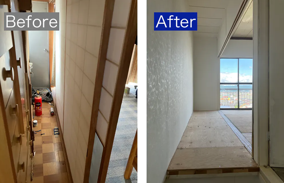 押入れのスペースは壁を壊してセルフのエステブースにします。