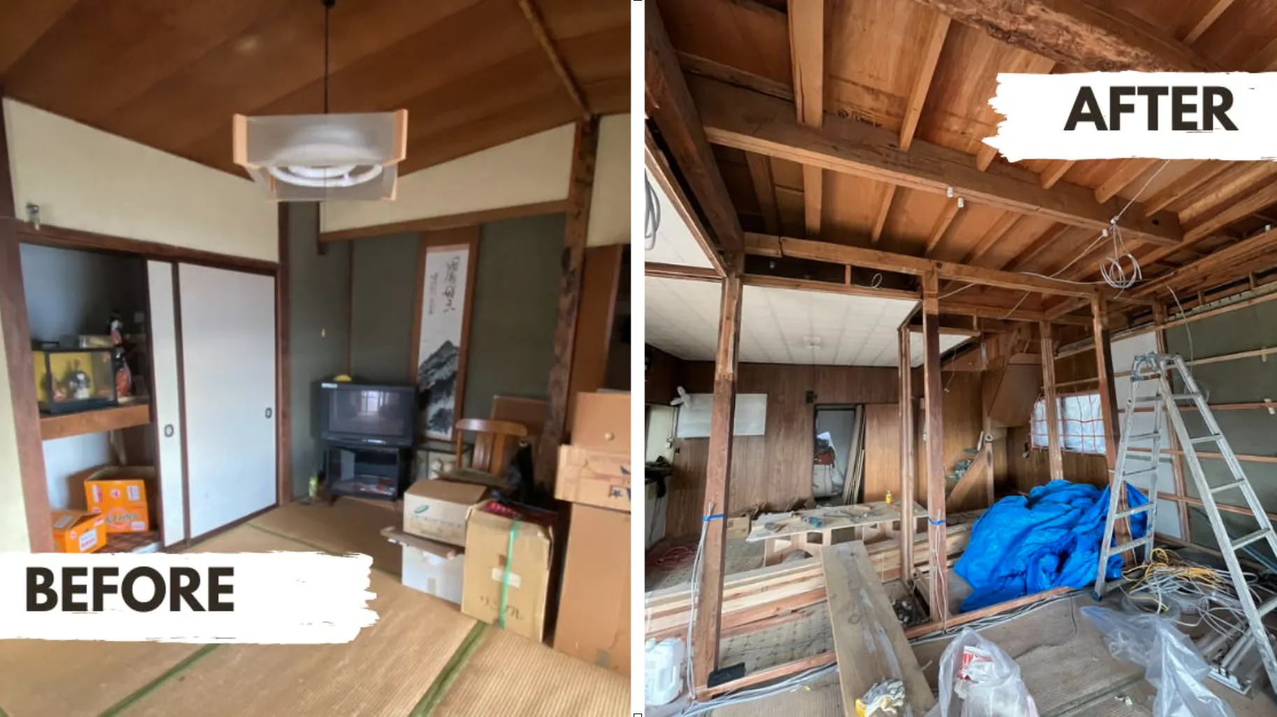 古民家リノベーション、ついに60%突破!壁と天井を壊して、広々とした空間を実現!