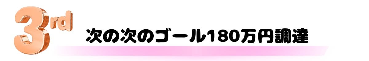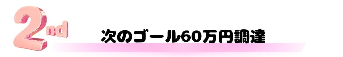 10万円の資金調達が達成された場合は、次に60万円の資金調達にチャレンジ致します。
