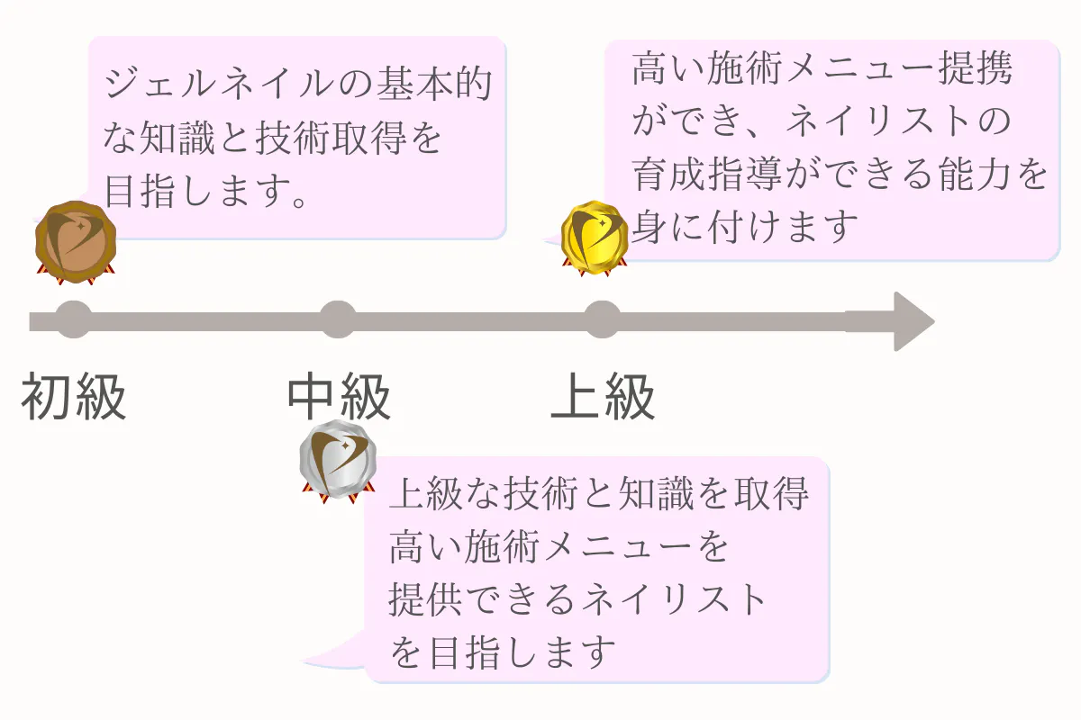 ネイリストの派遣会社と提携し、レベル別三段階の独自のディプロマを発行。