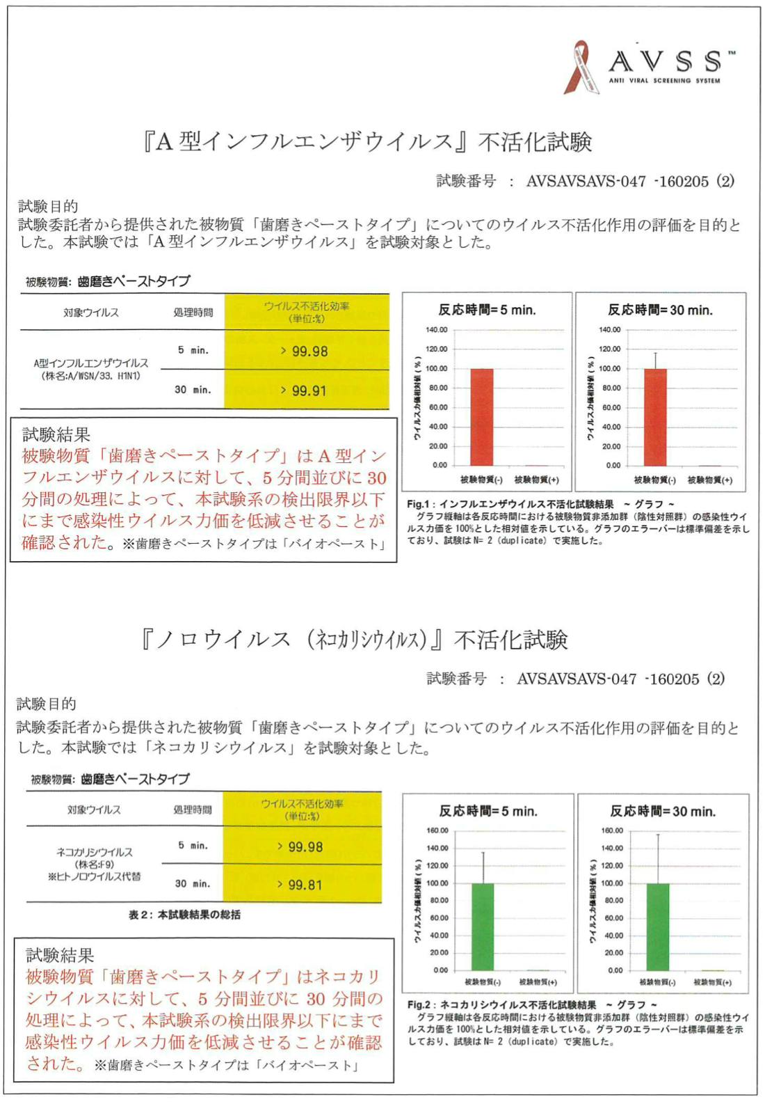 下記は、Erythree Careと同様の成分を持つバイオミネラルを使用した歯磨きペーストにおける不活性化検証の結果です。ご参考までにご覧ください。