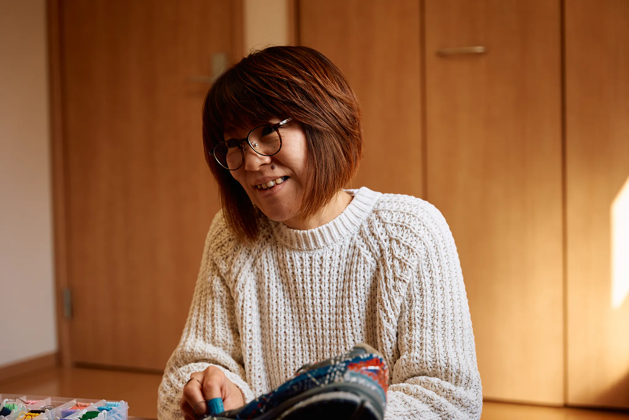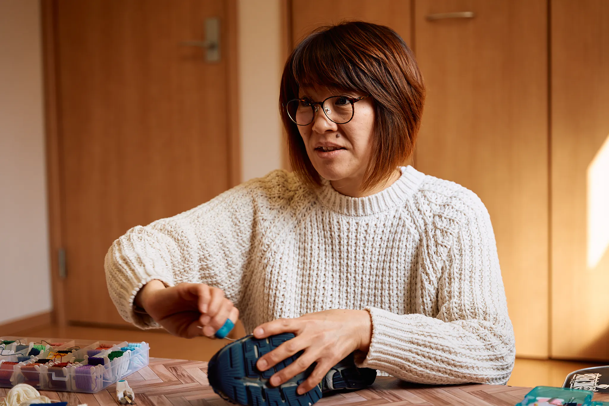 「正直、自分たちの体制を変えることが、初めは不安でした。今まで通りと変わってしまうことは、いつだって怖い。でも、そんな後ろ向きな気持ちがなくなるくらい、このプロジェクトの準備を進めてから楽しいんです。ぬいぐるみに刺し子をするなんて夢にも思わなかったし、硬くて歪な形状のスニーカーにも刺し子をできると知って誇らしかった。今は、早く私たちの刺し子を披露したくて、ウズウズしています(笑)。それに、サシコギャルズに生まれ変わることで、クオンの製品が自分にとってのオリジナルになるのもうれしいんですよ。このワクワクした気持ちを、みなさんにも届けたいです!」