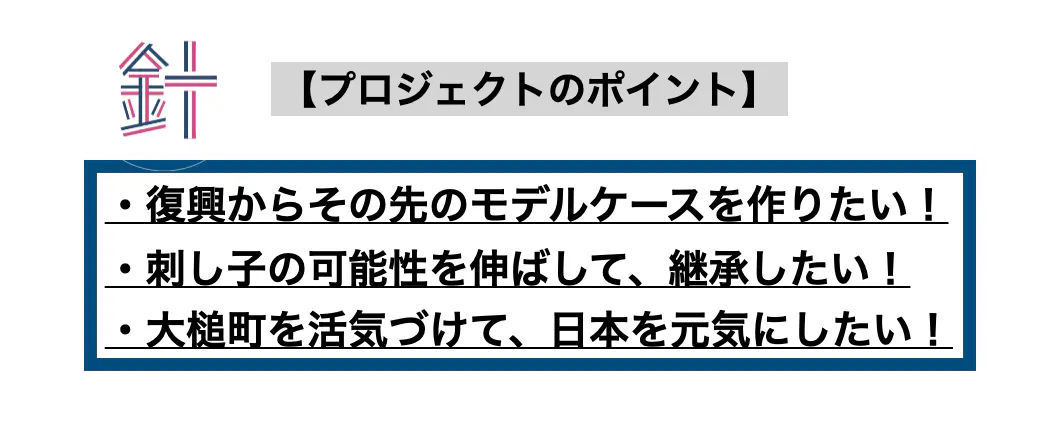 災害の多い日本において、「大槌刺し子」のストーリーは、復興の道標としても、地域産業としても、絶やさずに紡ぎ続けていく必要があると考えます。