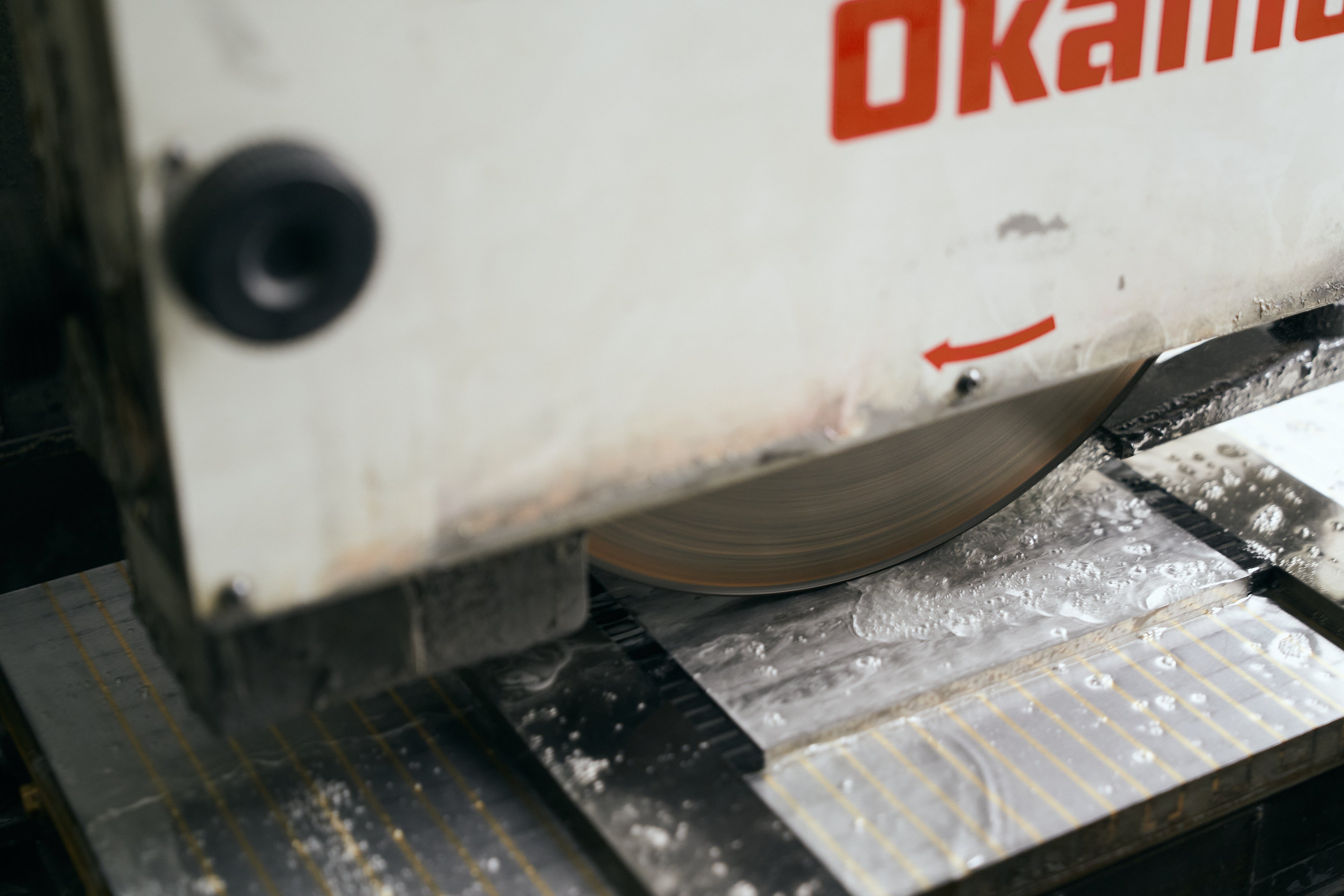 ⑥ 材料に高温の熱を加え材料の硬度を出し、研磨。厚み15.000(±0.001)mmにする。