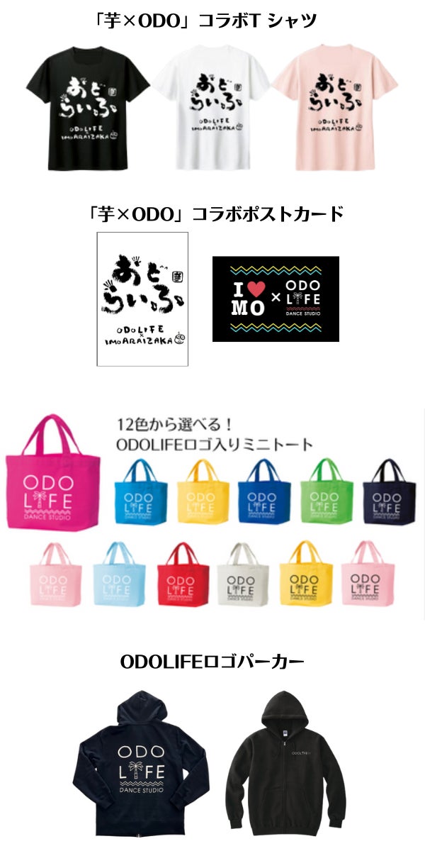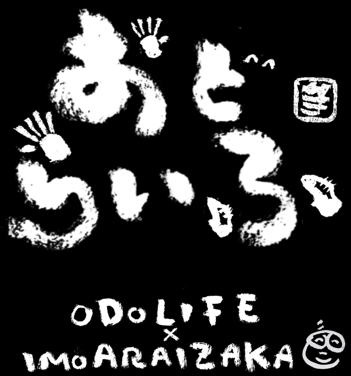筆文字アーティストとしても活躍する係長が描いた「おどらいふ」の文字!遊び心たっぷりの踊るような文字が最高に可愛い貴重なデザインとなりました。コチラのデザイン使ってTシャツとポストカードを制作しました!胸元には「I Love IMO」と「ODOLIFE」のコラボロゴが入っています。