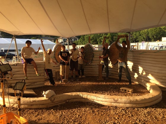 2016/06/17 18:04【プロジェクト終了しました。最終日は最高なシークレット復興ライブで締めくくり!!】 昨日で約1ヶ月にわたる”崇城大学ボランティアビレッジ”のプロジェクトが終了しました。 キッチンスペース、5mメインドームに引き続き、豆ステージが完成しました。3つが一気に立ち上がり、アースバッグの世界観が出来上がりました^^ 夜はキャンドル・ジュンさん主催するシークレットイベントで、様々なアーティストの方が集まり復興ライブが行われました。キャンドルと竹灯りの幻想的な雰囲気の中、最高の夜になりました^^ プロジェクトに参加していただいた皆様、クラウドファンディングなどで支援していただいた皆様、関係者の皆様。 おかげさまで無事にプロジェクトを終えることができました。 ありがとうございました! 熊本へお越しの際はぜひ”崇城大学ボランティアビレッジ”へ、今回制作したアースバッグを見に足を運んでみてください♪♪ https://local.camp-fire.jp/projects/view/7315?token=ln8buj41 もっと見る