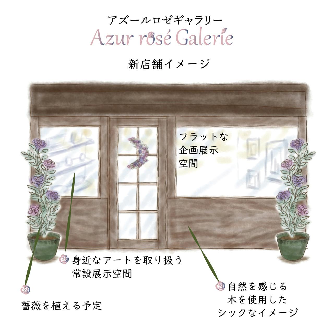Azur rosé Galerie(アズールロゼギャラリー)では、美術館のように常時取り扱う作家さんの常設展示と、月に1回期間限定で行う企画展示を実施しています。日本人が持つ独自の感性や美意識を感じさせる作家さんを今後も取り扱うとともに、「創の実」でたくさんのお客様とお話して得られた「癒し」をキーワードに、「ココロ踊るアートと癒しの空間~アートトリートメントギャラリー」をコンセプトに運営していきます。
