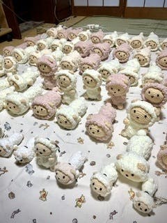 前回の「小児がんや重病の子ども達に編みぐるみを贈ろうプロジェクト7」で発送した羊さん(2024.1.3)です。山積みの羊さんを一つ一つ子ども達のことを思いつつ梱包し、発送する作業は、プロジェクトをしてよかったと思う瞬間です。