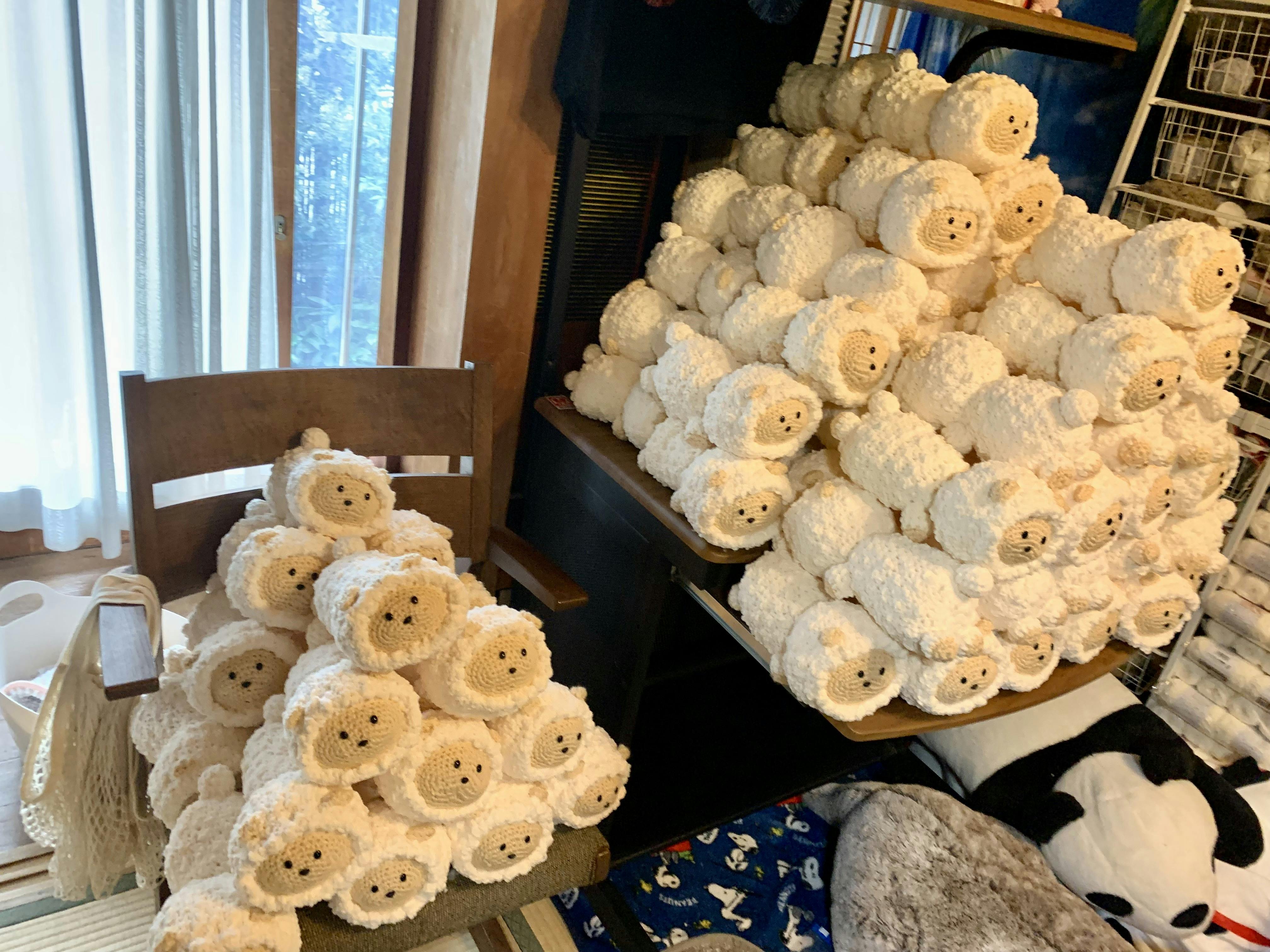 たかお編みぐるみ工房ではこれまで「幸せを呼ぶ羊さん」を400匹以上製作してきました(2023年12月には400匹を超えました。)1年間で300匹以上販売している自信作です。
