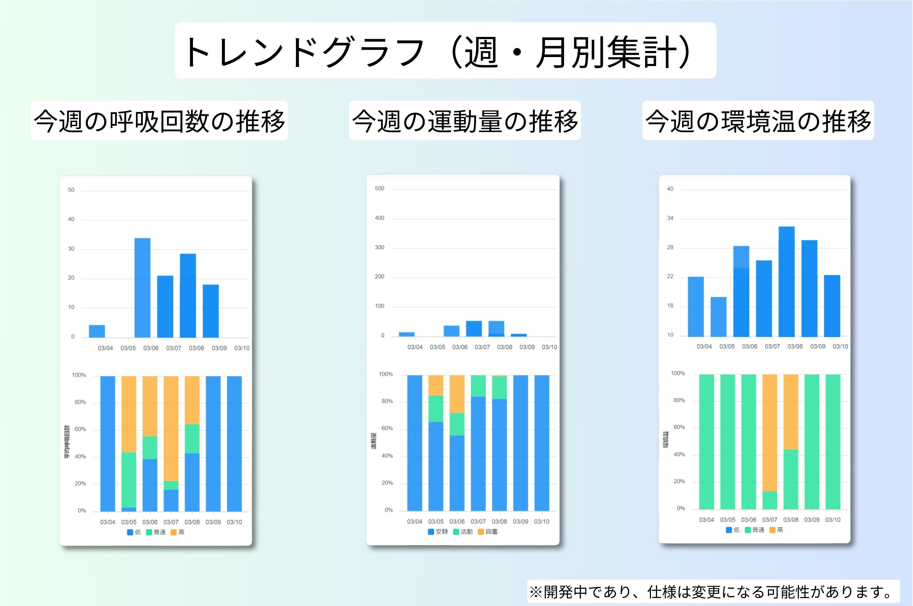 一日の安静にしていた割合や、動いていた割合が、他の日と比べて多いのか、少ないのかなどを知る参考になります。