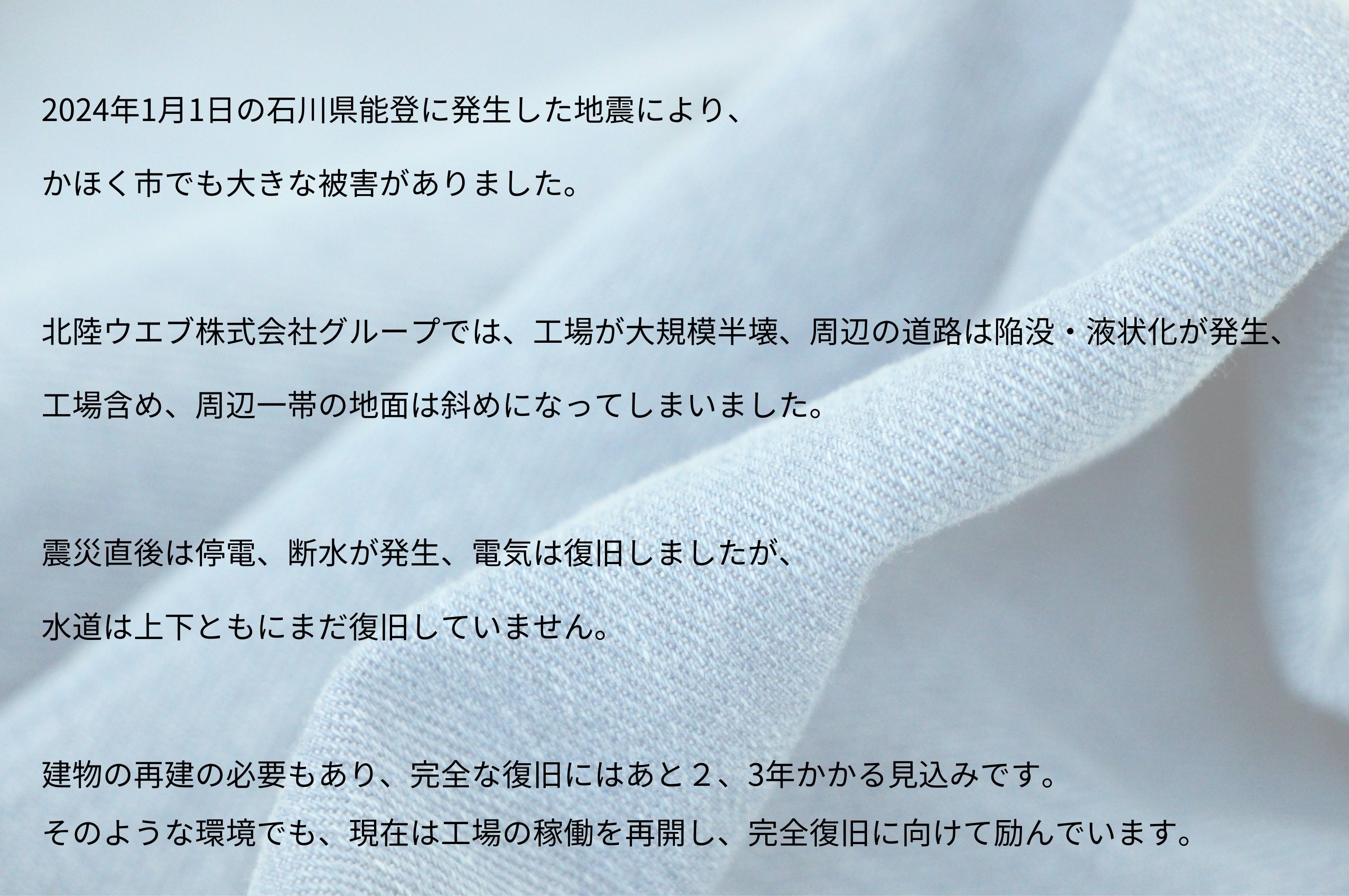 この特殊な繊維は、石川県かほく市にある、北陸ウエブ株式会社グループで製造しています。