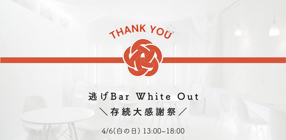 2024/04/03 17:30こんにちは!逃げBarクラファン達成記念の感謝祭まであと3日となりました。ご支援いただいた皆様限定のイベントとなりますのでぜひぜひご検討ください。当日は主に参加者の皆様同士の対話の場を中心にあらたな共逃関係の輪が広がるようにつくりました。逃げ場とは空間のみならず、人と人の関係だったりもするのでいざという時に、お互い逃し合えるような関係が、この場から始まればなと願います。また当日は、逃げBarの名物メニュー「エリクサー」全12種類を久しぶりにすべて解禁したり、小説の世界の食べ物を表現する「文学カフェ」さんとのコラボメニューがあったり、逃主によるDJタイムがあったりするので、良きタイミングで、好きな時に好きなだけ、お立ち寄りいただければと思います。下記イベントページより詳細の転載です。---イベントページはこちら(ご参加には下記URLより事前ご予約が必要です)https://shironohi.peatix.com/---日時:2024年4月6日(土)13:00-18:00(途中入退場自由)会場:逃げBar White Out神奈川県横浜市神奈川区 松本町6-45-4 市川ビル1階*アクセス・三ツ沢下町駅(ブルーライン)松本町6丁目方面出口より徒歩1分・反町駅(東横線)より徒歩10分・横浜駅より徒歩20分・専用駐車場はございません。 お近くのパーキングをご利用ください。参加費:1000円(ウェルカムドリンク付き)・クラファンで【白の日のイベント参加券+飲み放題プラン】をご支援いただいた方は無料となります。チケットは【白の日イベント支援者限定ご予約チケット】をお選びください。・その他の方は【ご予約チケット】をお選びいただき、当日会場にて現金かPayPayでお支払いいただきます。お申し込み方法:下記よりご予約https://shironohi.peatix.com/ドレスコード:持ち物:特になし(服装は任意になりますが白をおすすめします)◎ご支援者様お1人につき1名、お連れ様をご招待可能です。ご希望の方は本ページにて2名分のご予約チケットをご予約ください。(【白の日のイベント参加券+飲み放題プラン】をご支援いただいた方もお連れ様に関しては【ご予約チケット】をお求めいただきますようお願いいたします。)---タイムテーブル:13:00~・自己紹介/アイスブレイク・自由歓談タイム14:00~・1日店長代表 サカキより祝辞・逃げワールドカフェ「いま逃げたいこと」※ワールドカフェとはランダムに組をつくり対話をする形式です。15:00~・1日店長達より祝辞・逃げワールドカフェ「私の逃げ方/逃げ場」16:00~・逃主より祝辞・逃主によるDJ&自由歓談タイム17:00~・記念撮影・自由歓談タイム---開場中は会場内自由に撮影OKです。*人物を撮影する際は許諾を取ってからにしてください。*コスプレ参加等も歓迎です。(更衣室をご用意します)*自由歓談中に何か持ち寄りコンテンツを披露したい方もご自由にどうぞ。*ドリンクはキャッシュオンでご注文可能です。(応援プラン2をご支援いただいた方は当日もご利用いただけます)----注意事項-・当日は感染症予防のためなるべくマスクを着用の上、ご来店ください。・当日体調の悪さを感じた方、咳が出る方はご参加をお控えください。・宗教、マルチへの勧誘はご遠慮ください。・クローク等はございませんのでお荷物は自己管理をお願いいたします。・危険物及び火器の持ち込み使用は禁止しております。・店内は禁煙です。(店頭に喫煙所があります)-対話時のエチケット-・疲れたら休憩いつでもOK。・相手の話の傾聴を心がけます。・無闇に批判せず、相手の意見を尊重します。・ゆっくり聞いて、ゆっくり話す・知識をひけらかしたり、マウントを取ろうとしない・相手を変えようとせず、自分が変わることを意識します・対話中の録音録画は禁止です。・この場で話したことはこの場限りの秘密です・あいてとの対話を意識しましょう。 もっと見る