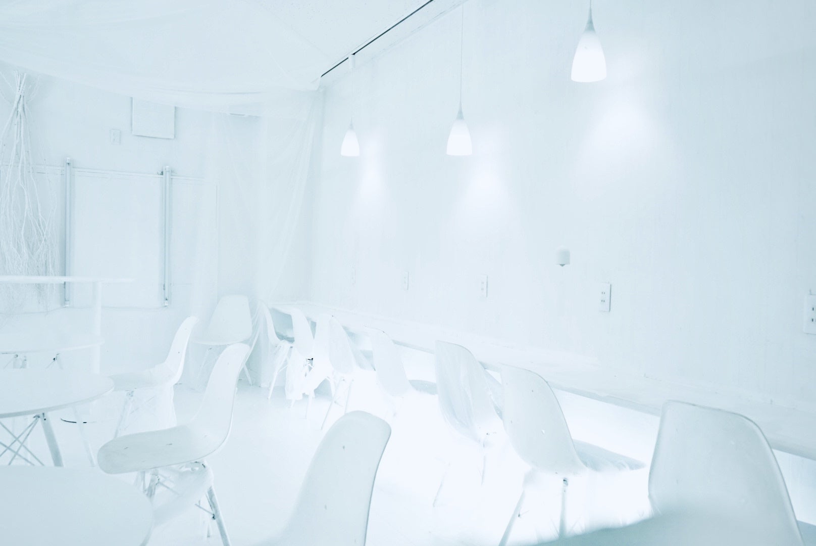 逃げBarはご覧の通り見渡す限り真っ白な空間です。(元々普通の茶色い穏やかなカフェだった場所を全てDIYで真っ白にしました)ここにいるときは誰もが「何者でもない真っ白な自分として居られるように」「クリアな思考で見つめ直せるように」と白一色の空間を作り込みました。