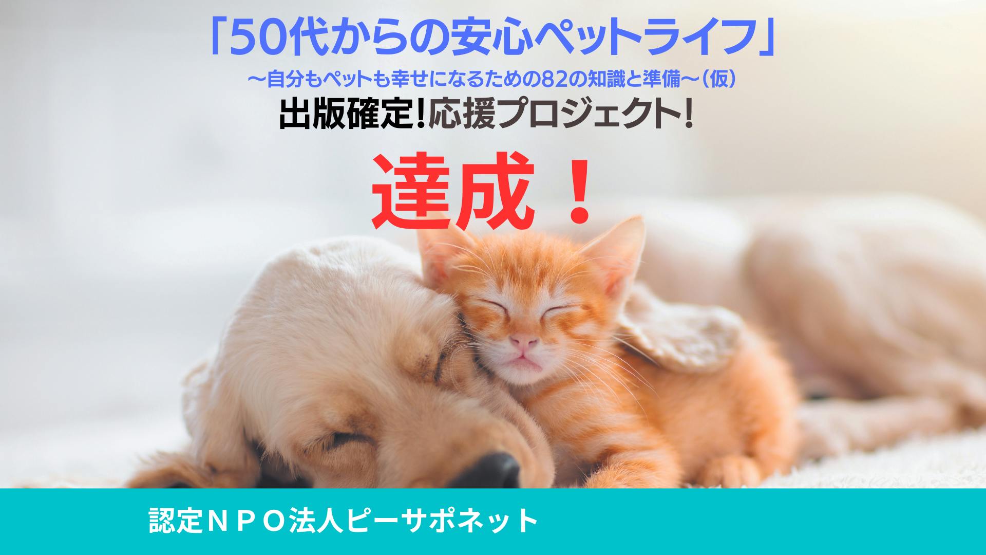 この度当プロジェクトを立ち上げます「認定NPO法人ピーサポネット」の藤野善孝と申します。当プロジェクトに興味を持って頂き誠にありがとうございます。今この瞬間にも、飼い主の突然の死により、愛情たっぷりに育てられていた犬や猫達が、この世を去ろうとしています。そして、愛情たっぷりに育てた犬や猫達に先に逝かれてしまい、その喪失感を解消する為に里親になろうと思っても、里親に中々なれない社会環境があります。このような犬や猫達の悲劇や高齢者の不安感・喪失感を撲滅したいとの想いで、2017年11月にNPO法人ピーサポネットを設立しました。そして、2019年8月23日に管轄官庁より公益認定法人として認定を頂き、我々が提唱している「ラブポチ信託」の本格的な普及活動が始まりました。今では周りの協力者のお陰で少しずつですが認知度も上がり、問い合わせも少しずつ増えてきている状況です。しかし、まだまだ「ラブポチ信託®」の存在を知らず、ペット達の行く末の事について悩まれている方が沢山います。このような問題を解決する為に一人でも多くの飼主様に「ラブポチ信託」の仕組みを丁寧にお伝えし、安心して犬や猫達と暮らせる環境を提供したいと考えています。そして1頭でも多くの犬や猫達の命を繋いでいきたいと考え、昨年より「ラブポチ信託」の丸わかり本出版プロジェクトを進めてきました。そして、この度、同文舘出版から『50代からの安心ペットライフ~自分もペットも幸せになるための82の知識と準備~(仮)』というタイトルで出版する事が確定しました。書店に並ぶのは9月上旬になりますが、この本を読んでいただく事によって、「ラブポチ信託」の認知度も上がり、一人でも多くの方がご自身の「家族」の命を守るための対策を考える機会を提供できると確信しています。是非とも我々の活動をご理解いただき応援していただくと幸いです。