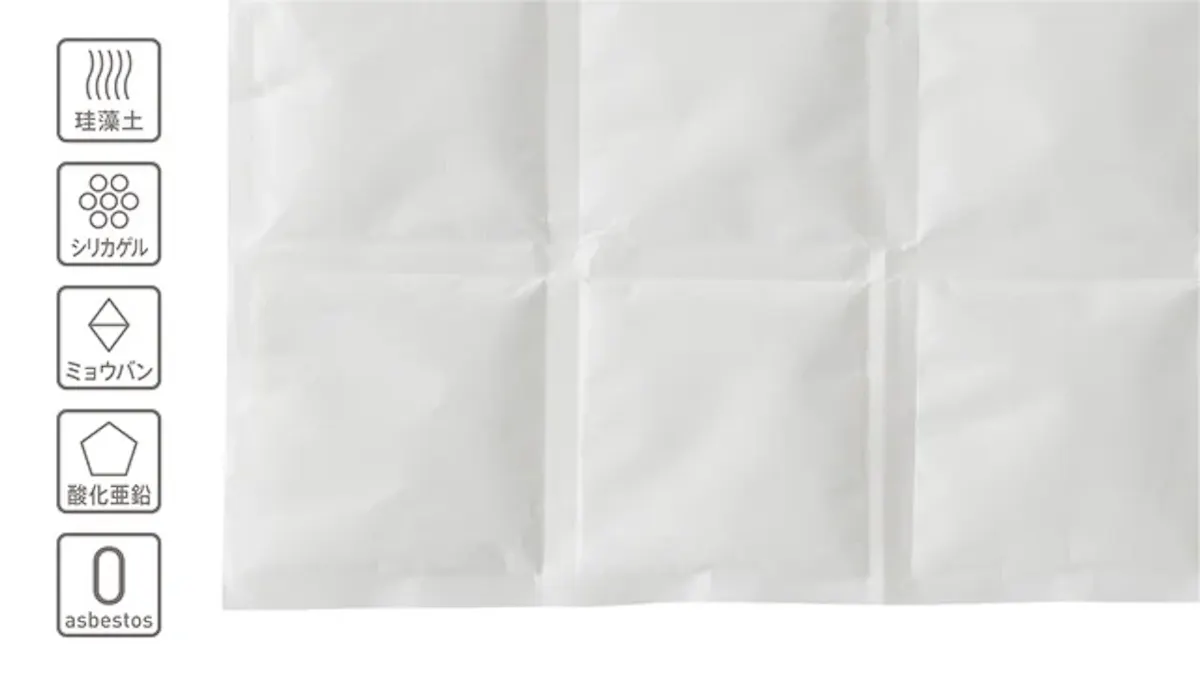 ■インナー材質 不織布(ポリエステル)/珪藻土粉末/シリカゲル粉末/ミョウバン粉末or炭酸ナトリウム粉末/