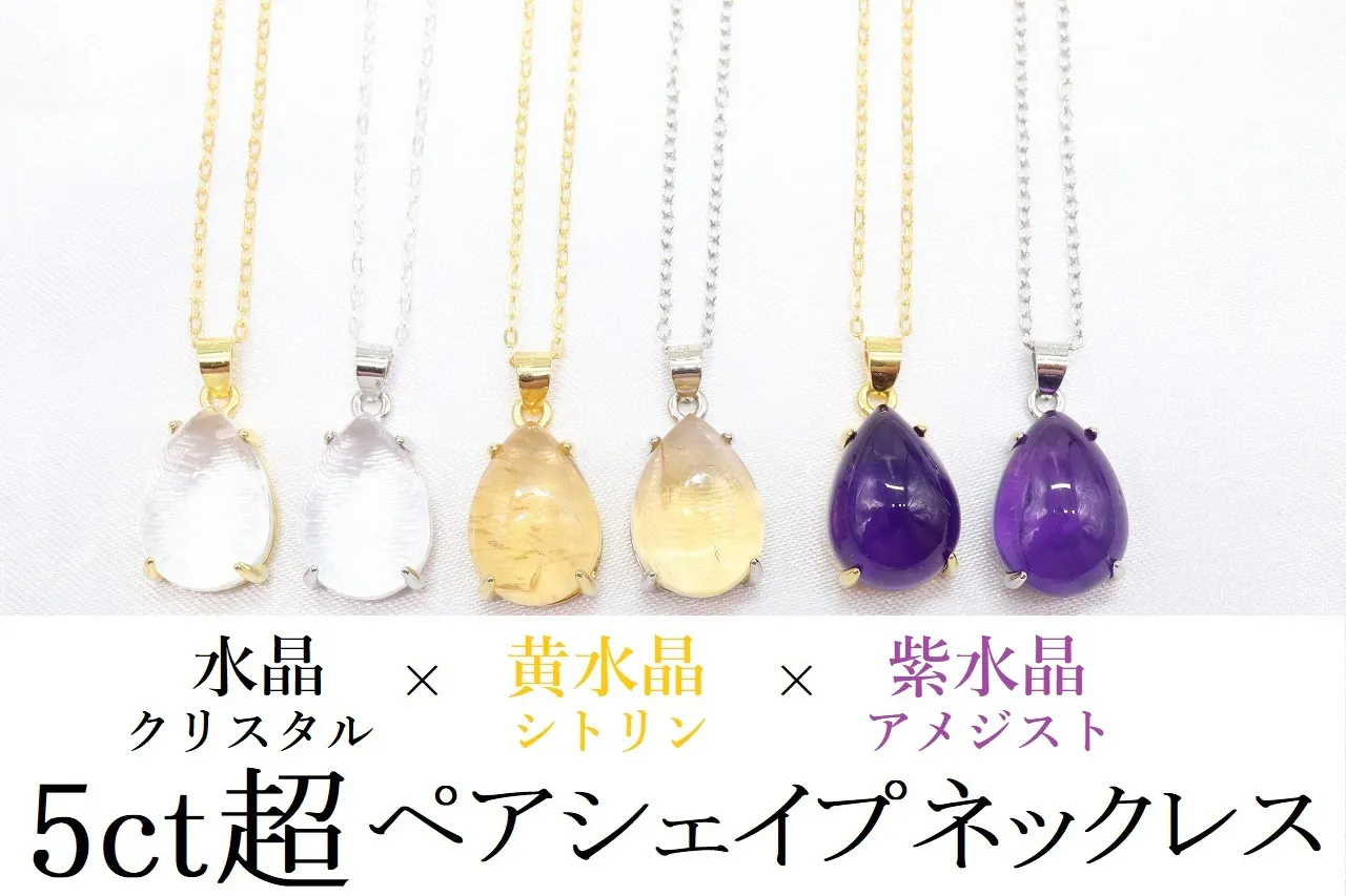 ★本日最終日★ 水晶(クリスタル)黄水晶(シトリン)紫水晶(アメジスト)5ct超ネックレス
