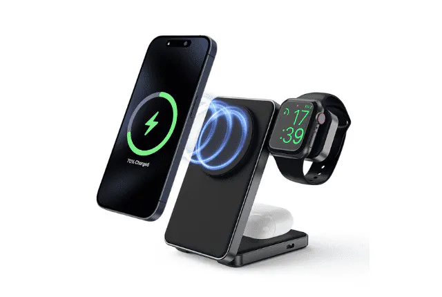 最大出力は25wです。スマホ15w + AirPods 5w + Apple Watch 5wです。 ただし、15wはアンドロイド用、iPhoneは最大10w(7.5w)です。