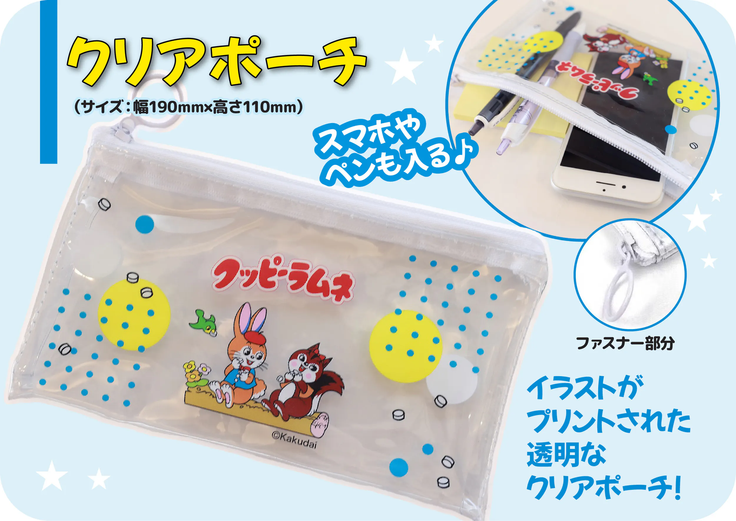 クッピーラムネのキャラクターが散りばめられたレトロで可愛らしいデザインです。