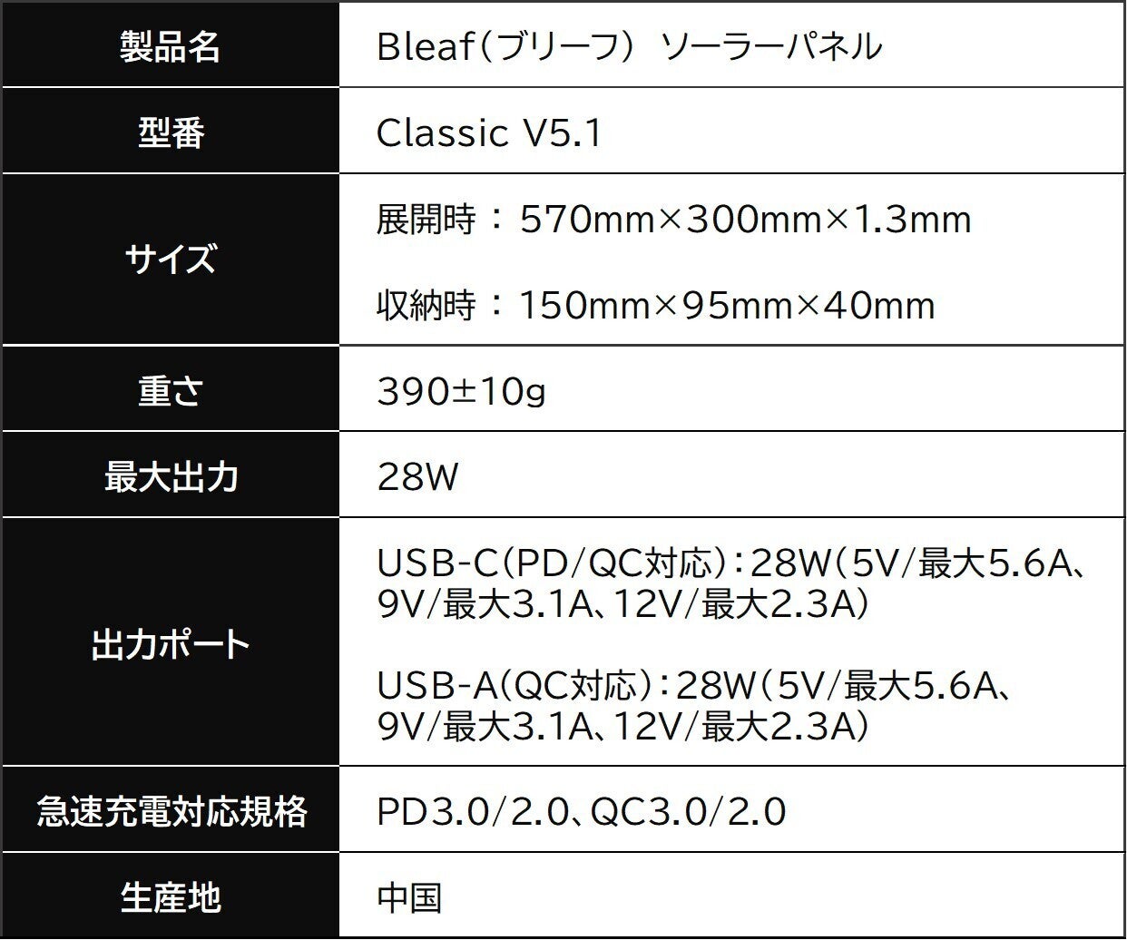 最大出力28W、PD/QCに対応したUSB Type-C、USB-Aポート搭載!ひとつ持っておくと安心のソーラーパネル「Bleaf(ブリーフ)」第4弾、登場です。
