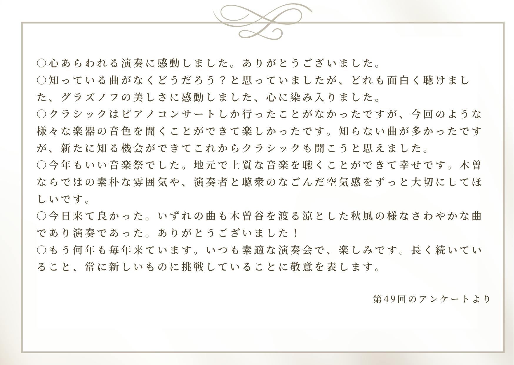 今年で木曽音楽祭は第50回の開催を迎え、半世紀続く音楽祭となりました。