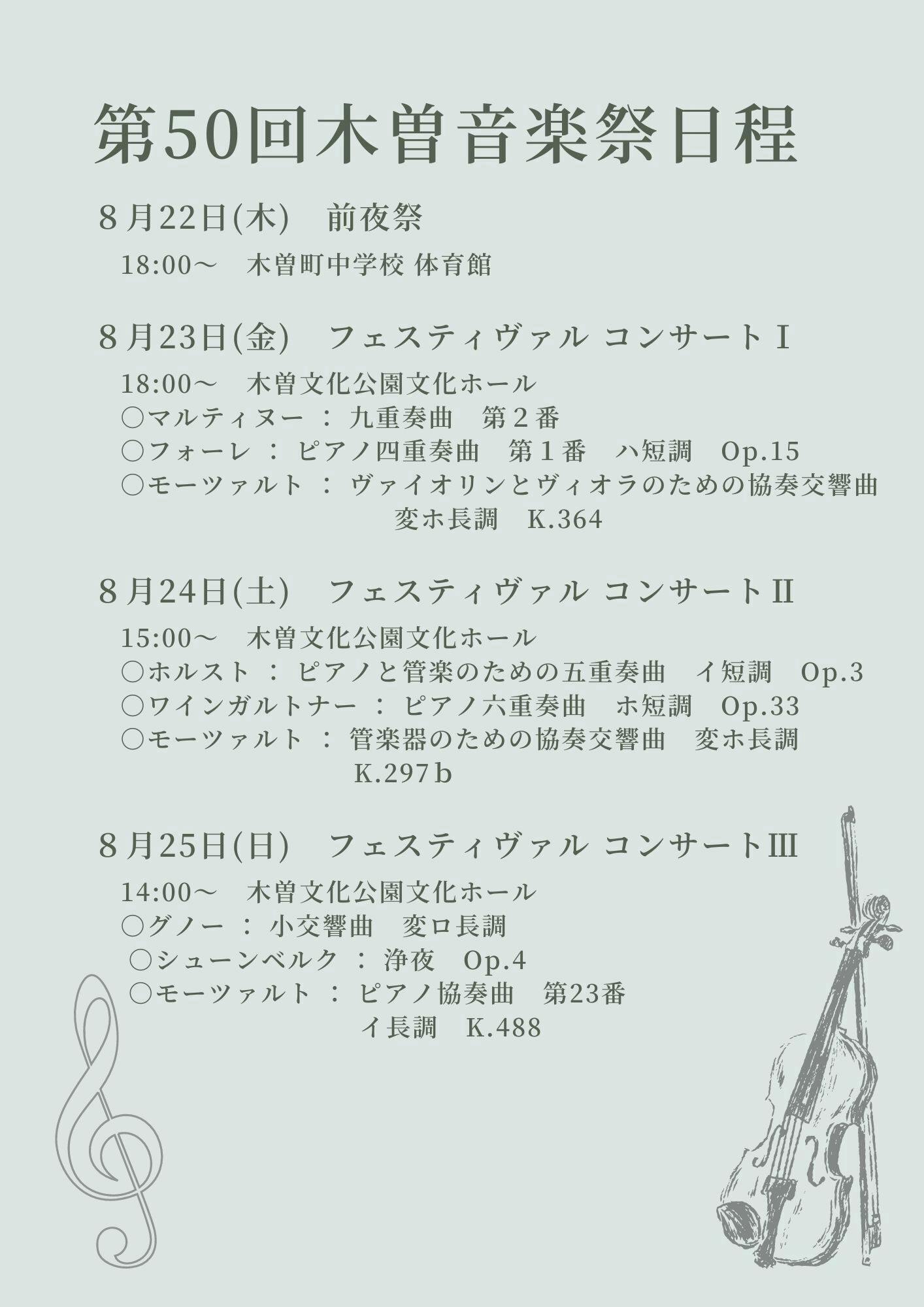 半世紀続いた木曽音楽祭が今年も開催されます。