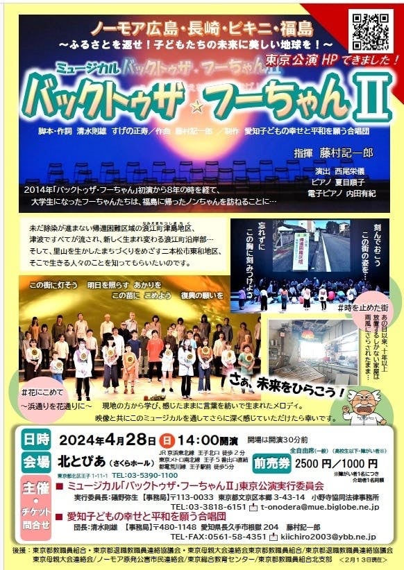 このプロジェクトは、「愛知子どもの幸せと平和を願う合唱団」と「ミュージカル「バックトゥザ・フーちゃんⅡ」東京公演実行委員会」が主催しています。