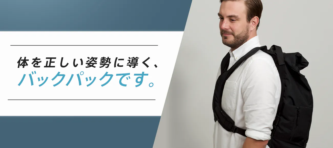 しかし、バックパックを背負うと体のバランスを保つために前のめりの姿勢になりがち。