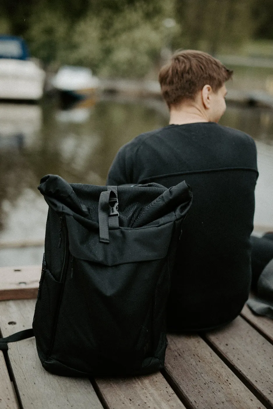 さらにロールトップのバックパックは見た目もスタイリッシュ。