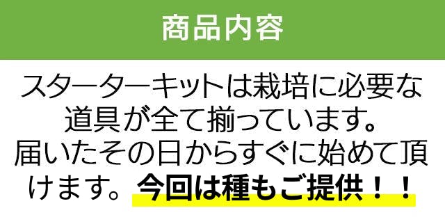必要なものは水と、お好きな種だけ。 スターターキットには必要な土壌となるスポンジ、粉肥料などすべて入っています。