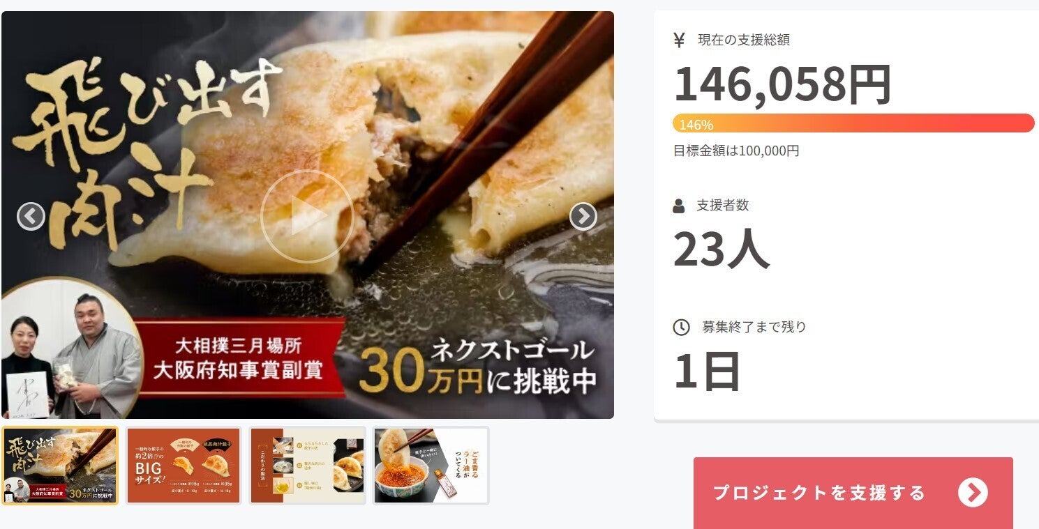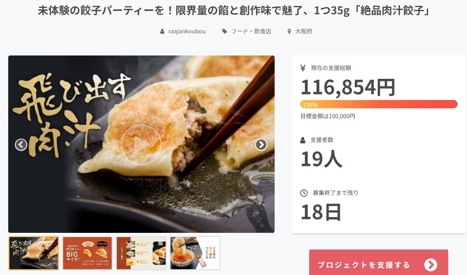 【本日ラスト】絶品肉汁餃子のプロジェクト本日最終日です