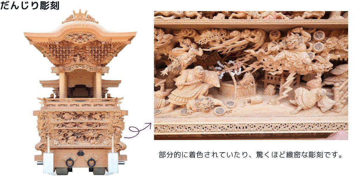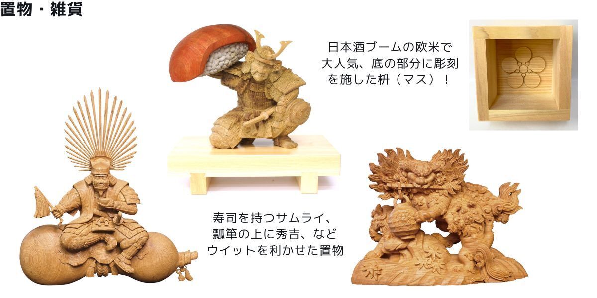 大阪府の南部、岸和田市で有名な「だんじり祭」のだんじり彫刻を手掛ける職人さん。伝統工芸であるだんじり彫刻の技術を世界に広めたい、と、だんじりだけでなく、食器や酒器、雑貨、オブジェなども手掛け、ミラノやドバイの国際展示会に出展されているという国際感覚の優れた方なんです。