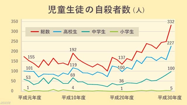 この他、「家庭不和」53人、「精神障害」46人、「進路問題」44人、