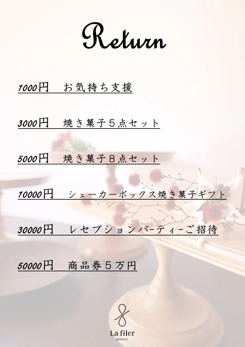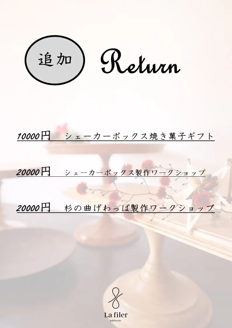 目標達成の感謝を込め、ラスト1週間、リターンを追加させていただきます。