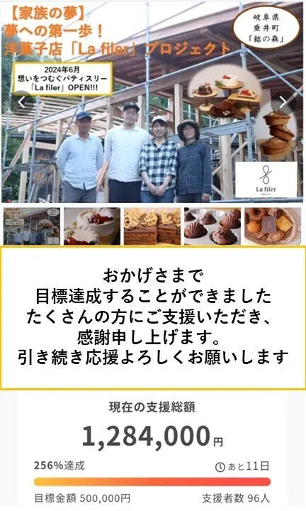 予想を超えるたくさんの方にご支援いただき、感謝申し上げます。