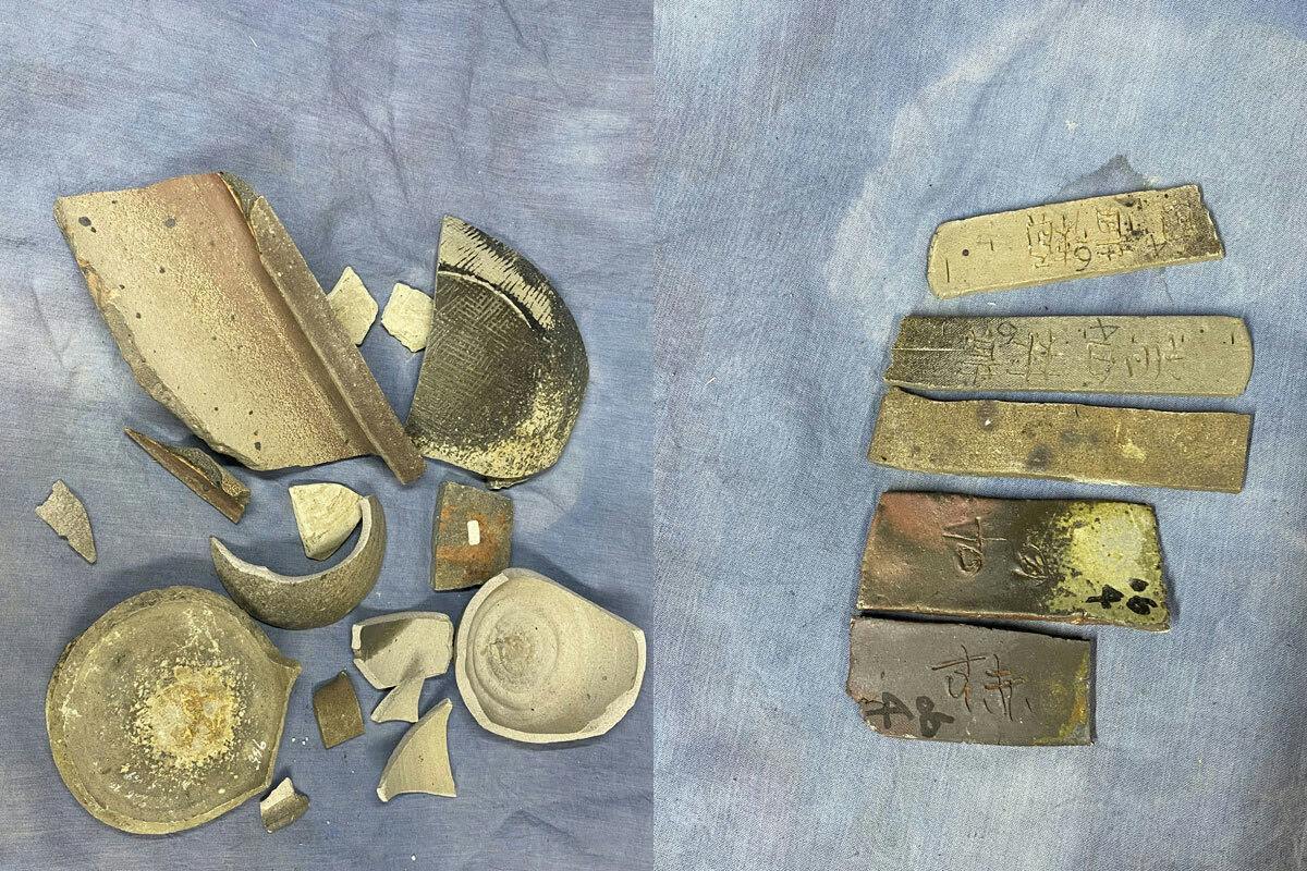 当時発掘された須恵器のかけら(左)と、私が研究中に焼いたテストピース(右)