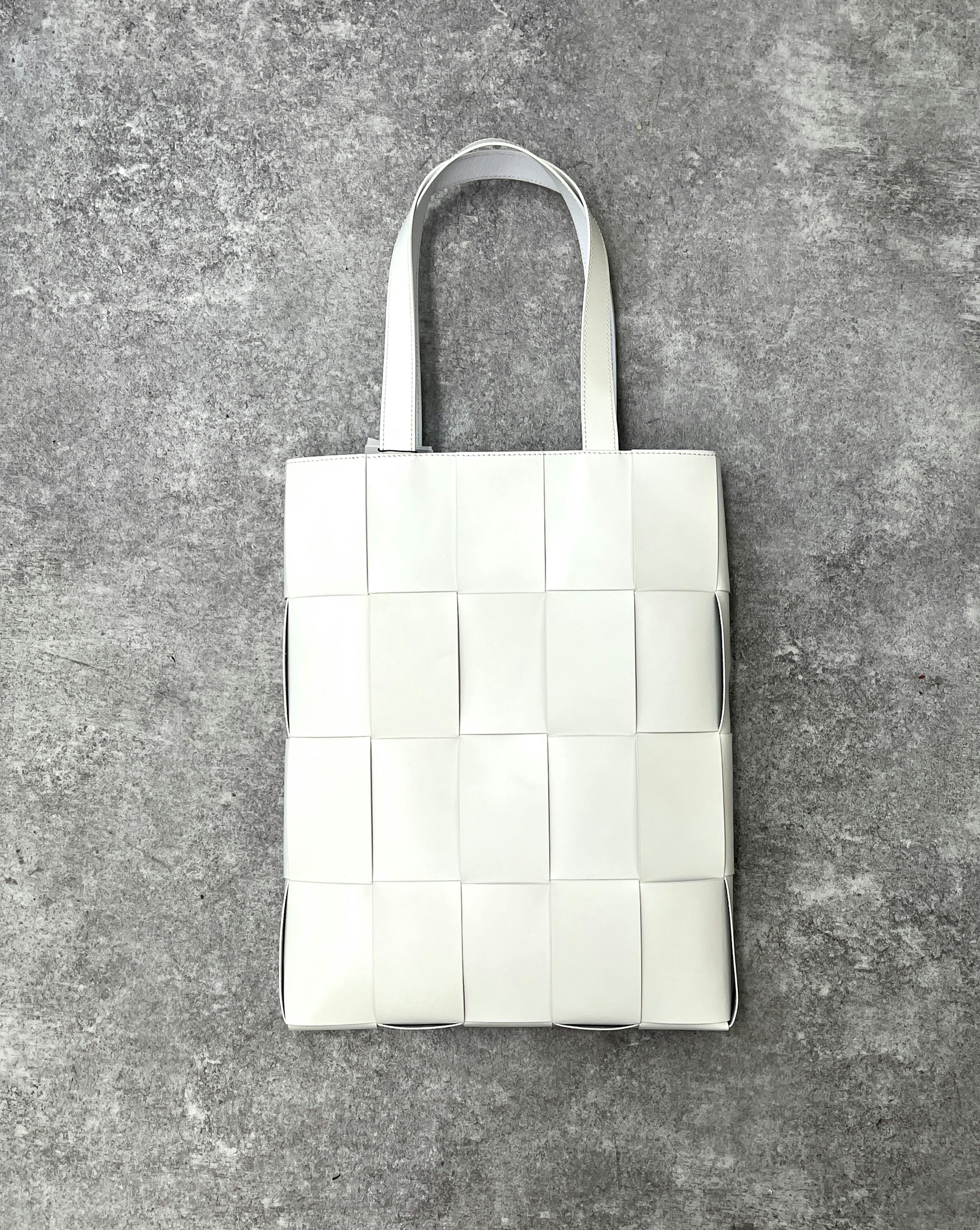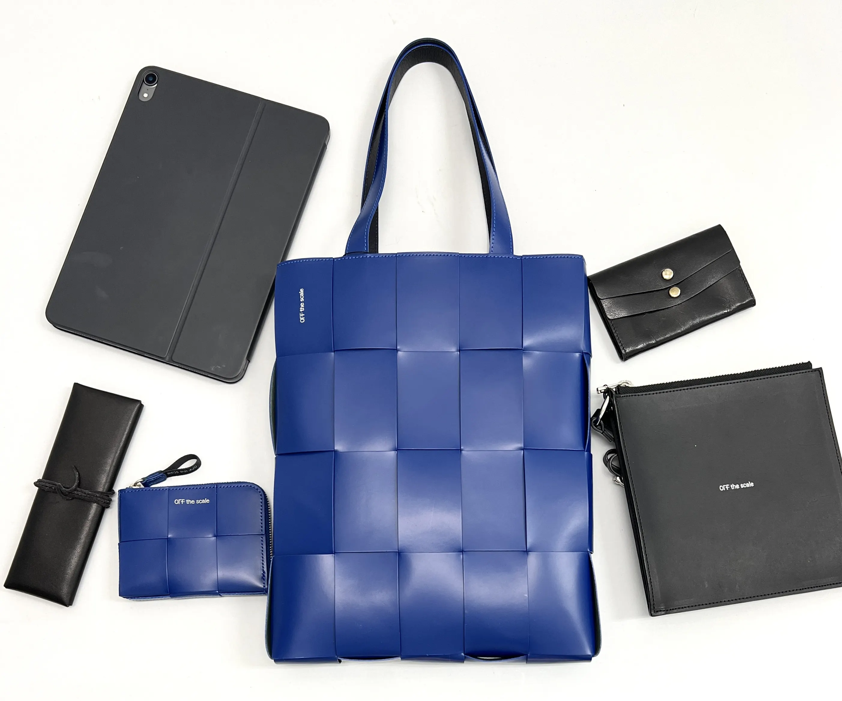そして、私たちの情熱と独自の哲学が詰まった"OFF the scale"の新しいアイテムが登場します。洗練されたスマートなシルエットと格子状に編み込まれた豊かな革の表情が特徴的で、使い勝手の良いトートバッグ(A4サイズ)は日常のあらゆる場面で活躍します。樹脂膜の効果により、キズや毛穴が目立たず、均一な表情が維持されます。豊富なカラーバリエーションで自分らしいスタイルを表現し、日本製の品質と美しさをお届けするため、ご注文後に熟練の職人が手作業で制作されます。ぜひ、私たちの挑戦をサポートし、新しい価値と楽しさを共有してください。