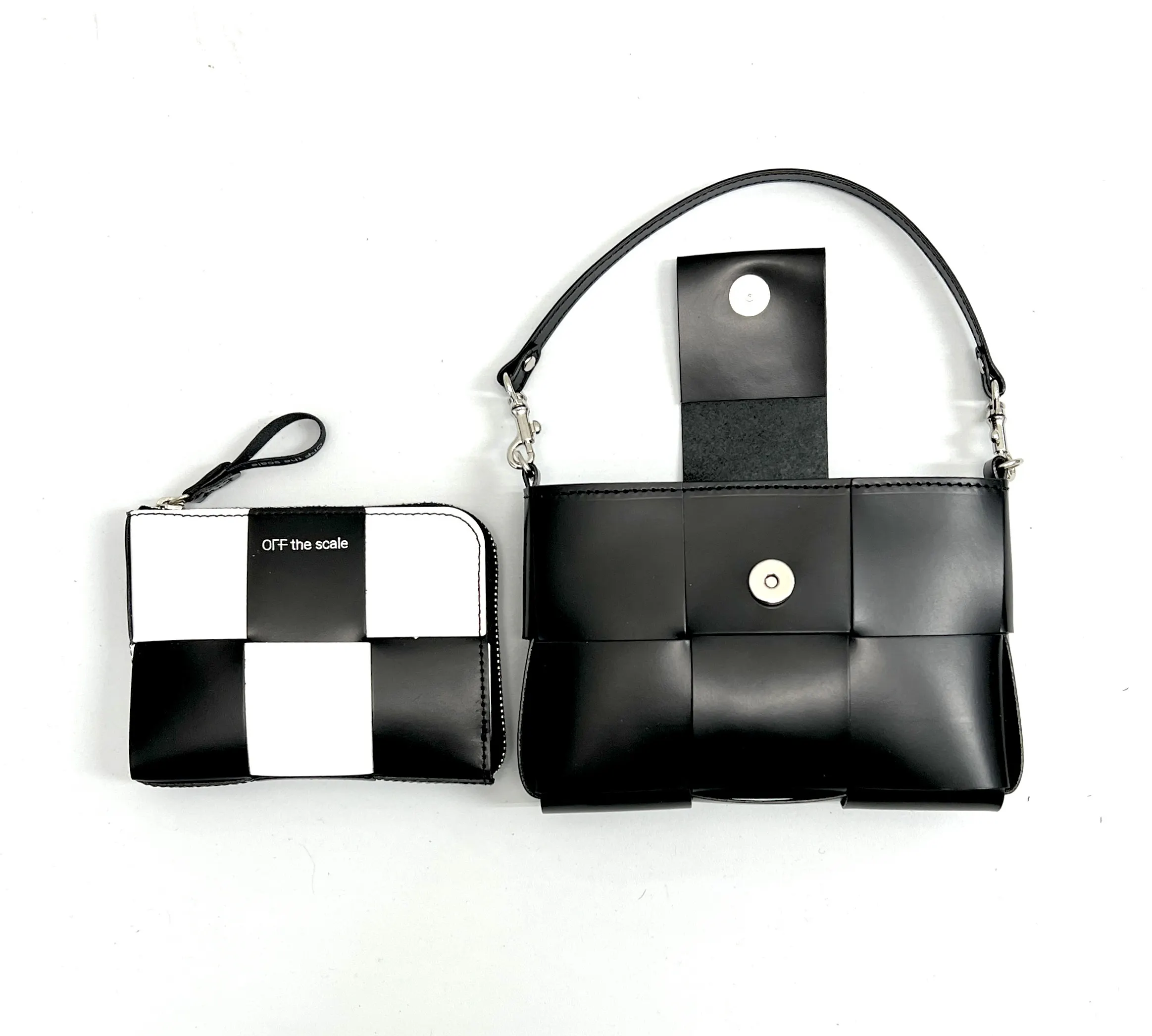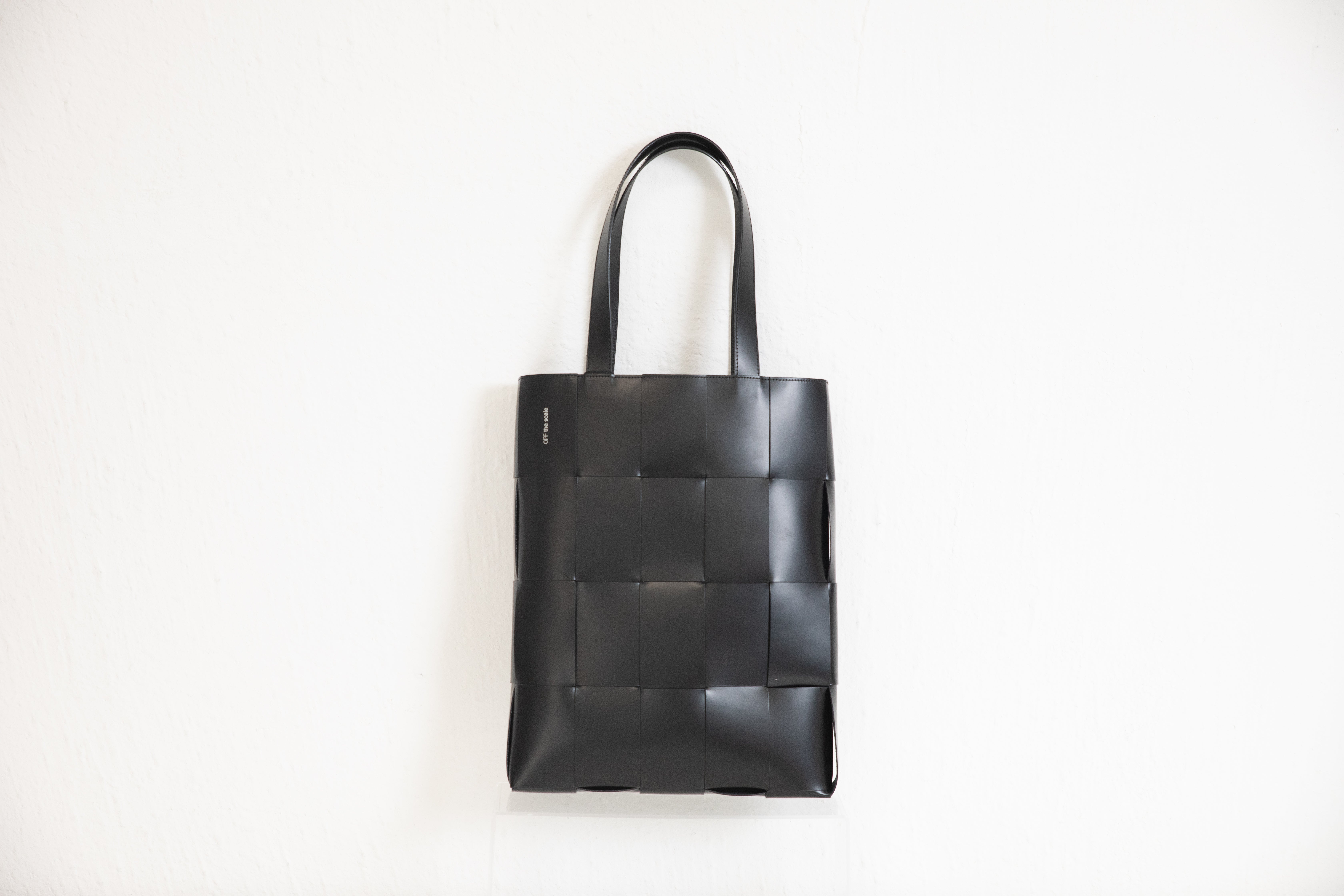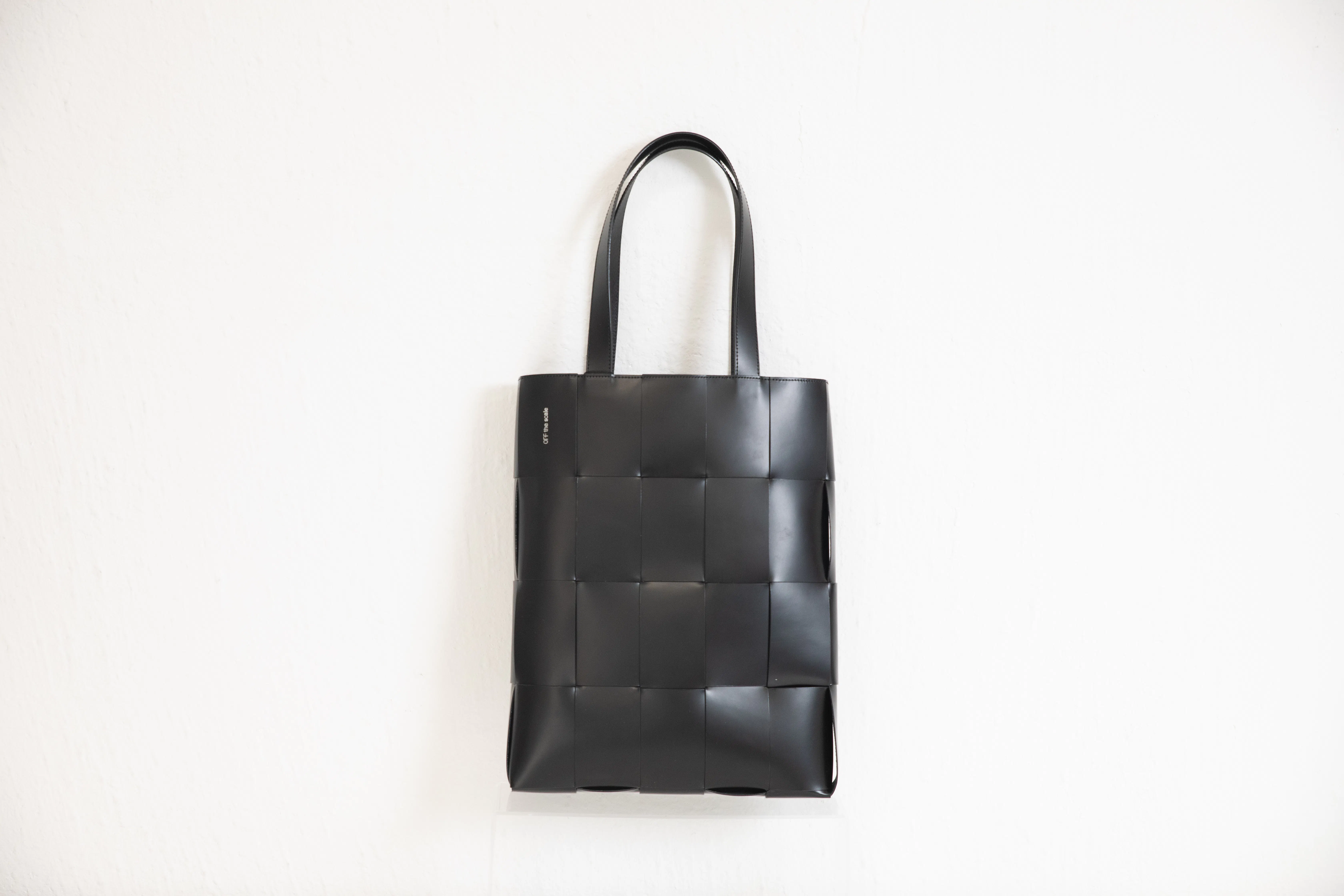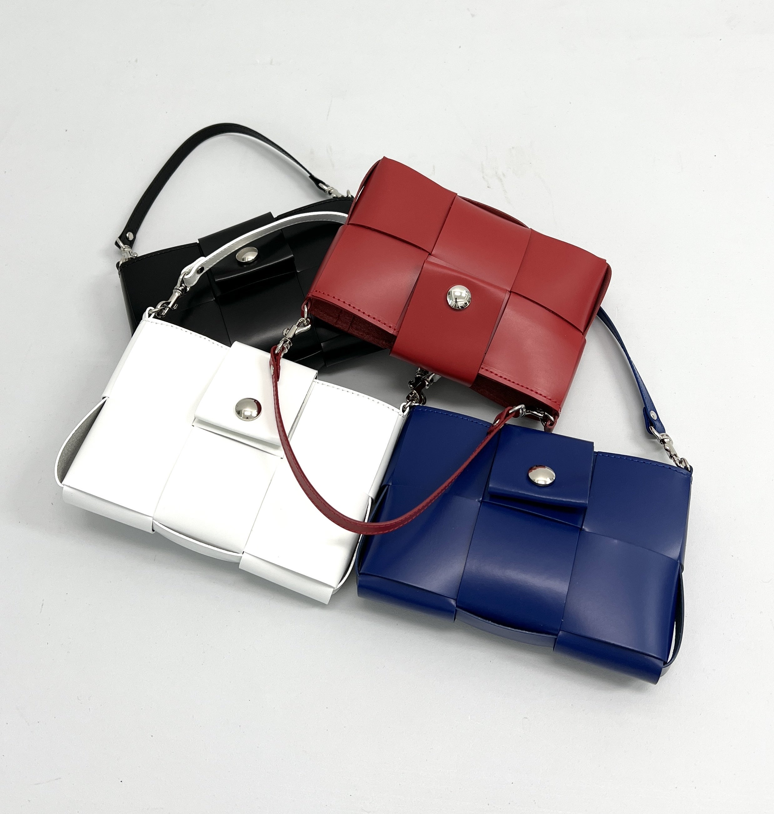 スクエア型の独自の「組む編む」フォルムは、シンプルながらも個性的な印象を与えます。