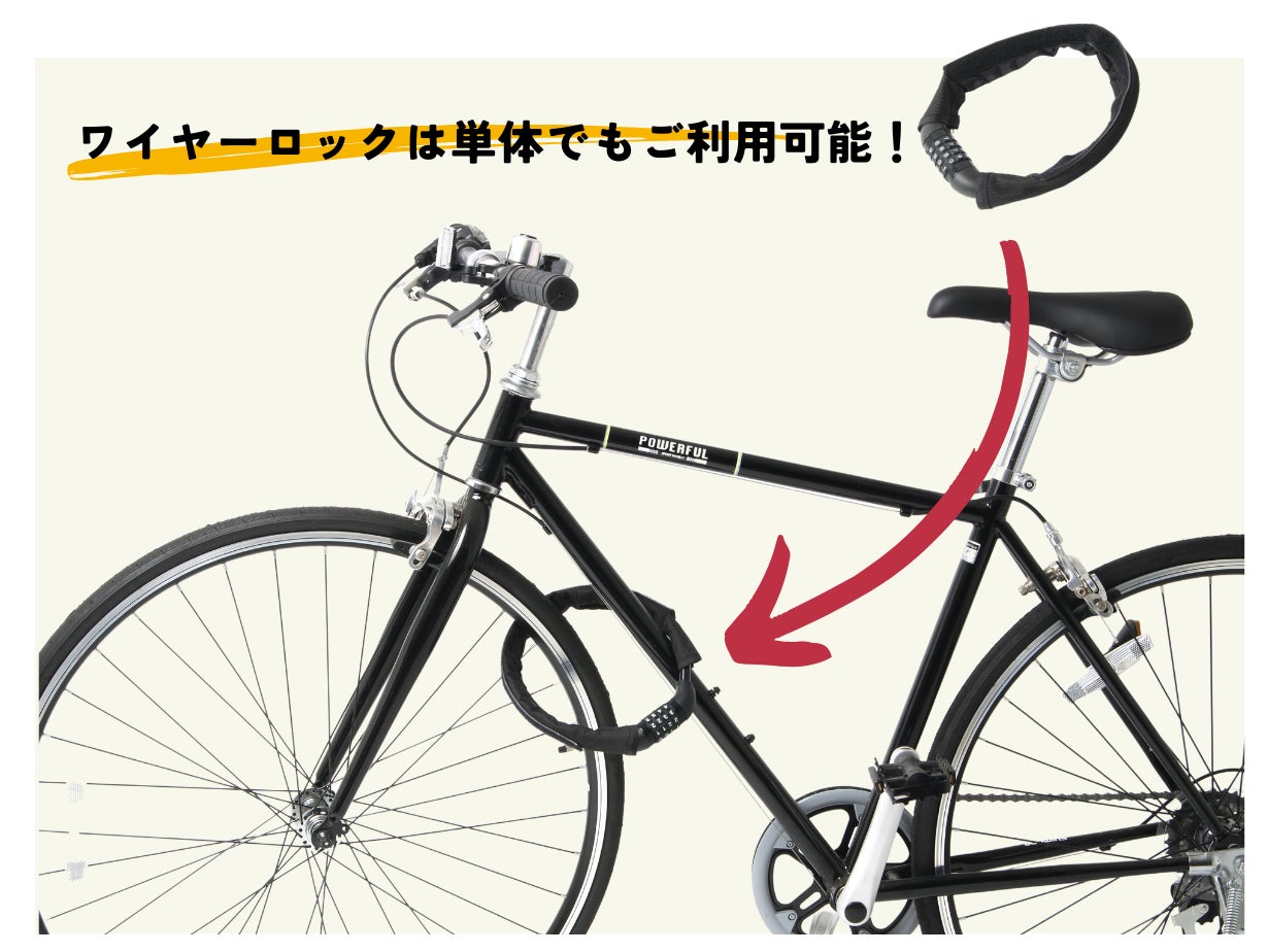 長さ45cmのワイヤーロックでフレームだけでなく、タイヤやカゴ、またはポールにかけて地球ロックとしても◎