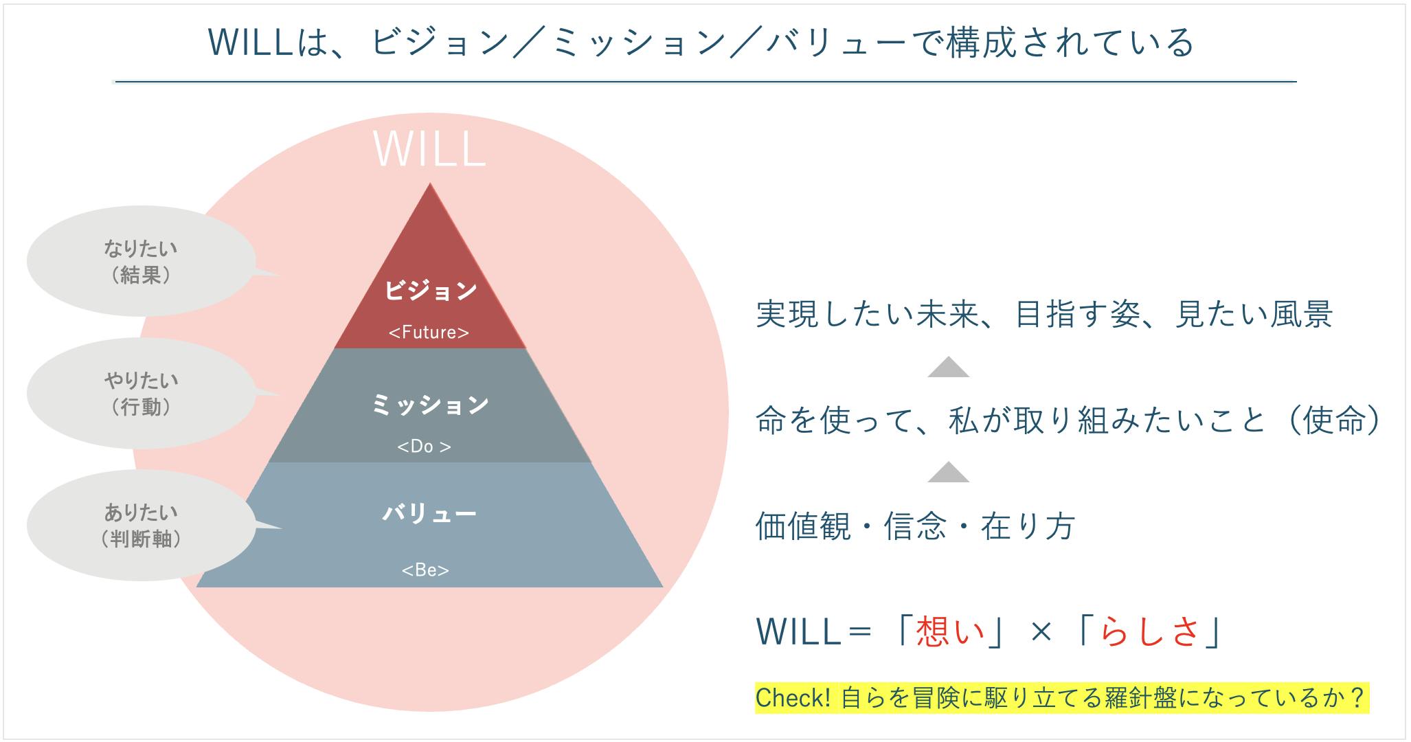 自分の意志や欲求である「WILL」を認識し、動き始めましょう!