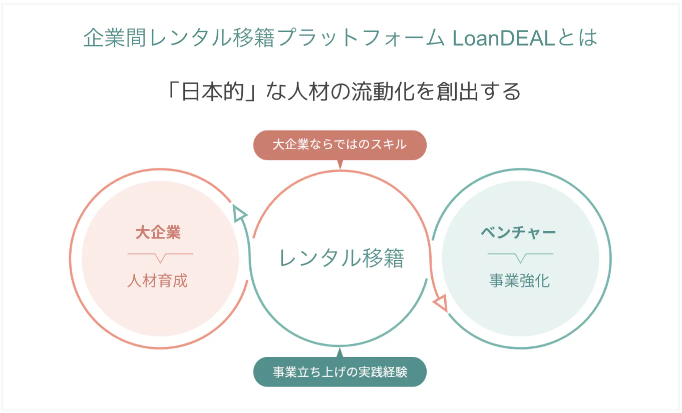 「レンタル移籍」とは、大企業人材が一定期間ベンチャー企業で働く仕組み。
