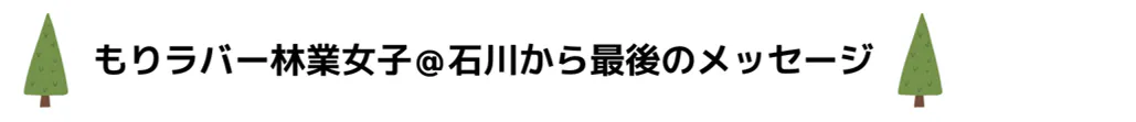 木が好きで、森が好き。「かわいいとたのしいとおいしい」で、石川の林業を応援する女性のグループです。長い年月をかけて育つ木や森のように、「100年先を語れる余裕の女子」として、現在全国に26の林業女子会が活動しています。
