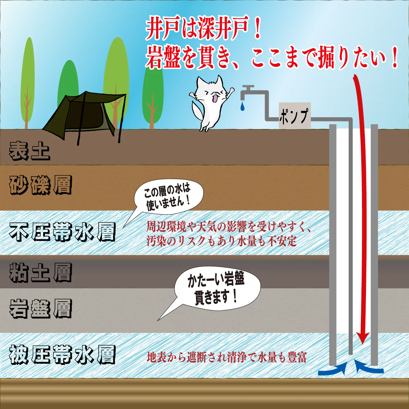 現在の炊事場の蛇口から出てくる水は、谷の湧き水をタンクで沈殿ろ過し使用しています。ただでさえ荷物の多いキャンプ、飲み水を別途購入し持参するのは重たくて荷物が増え、クーラーボックス内も圧迫し、大変だと思います。そこで今回、場内に地下10メートル以上の井戸を掘り、岩盤を貫いて最高においしい安全な地下水を引き上げます。美杉町という地域はその土地柄なのか、井戸水がめちゃくちゃ美味しいです。子供のころ、両親が毎週大阪から美杉町まで水を汲みに行き、その水で生活しておりました。そんな美味しい井戸水を、キャンパーの皆様に届けたい。もっとキャンプを快適に楽にしたいという思いでプロジェクトを進めております。